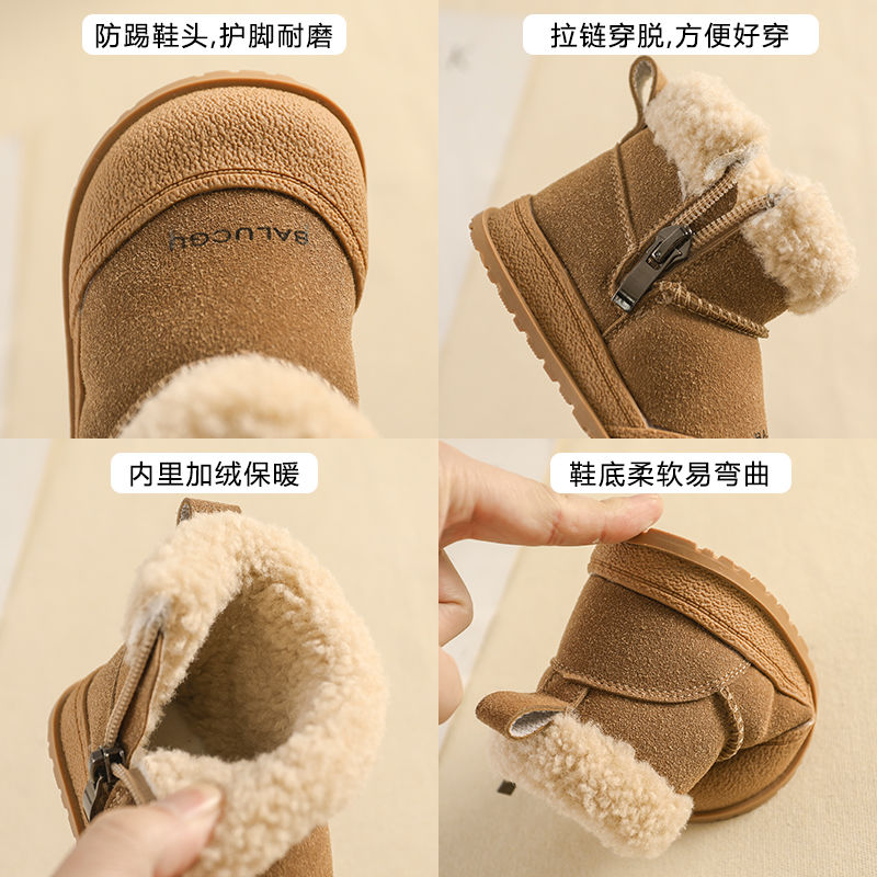儿童雪地靴2025冬季新款女童加绒加厚保暖棉靴男童防滑软底短靴子