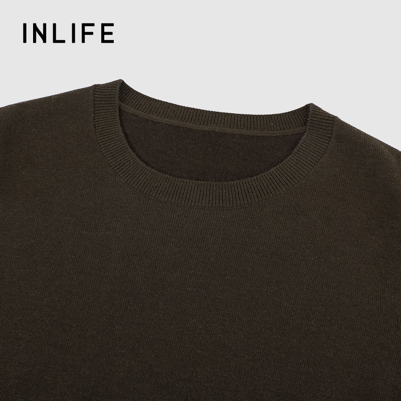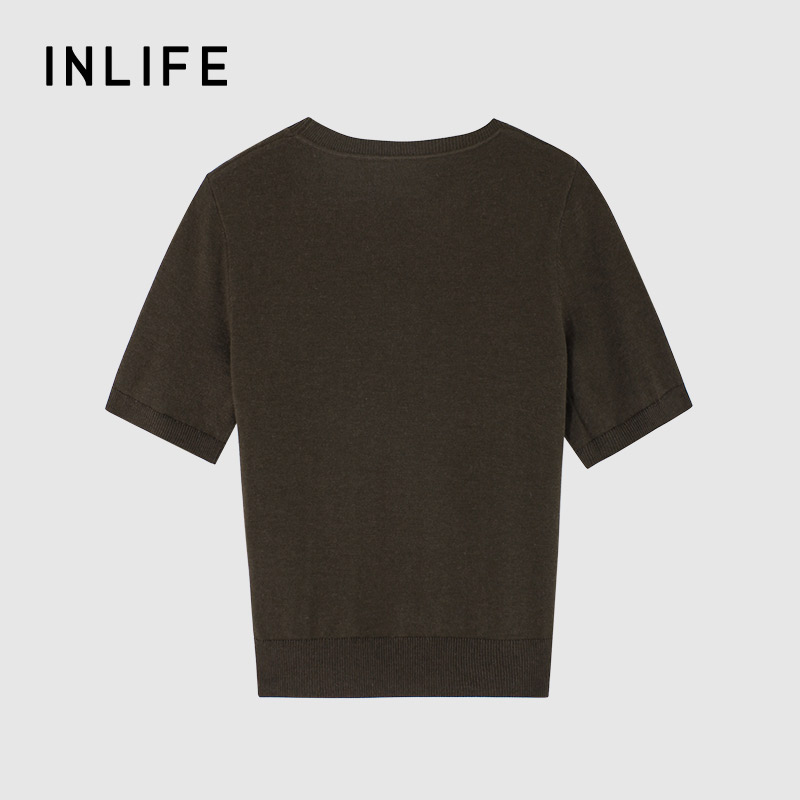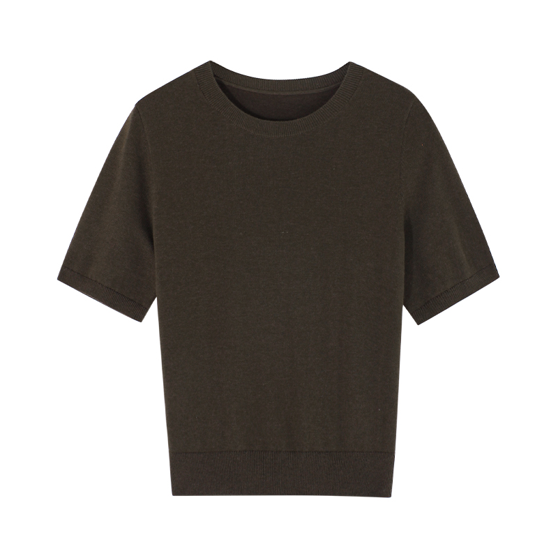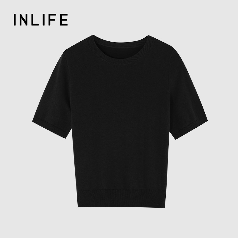 伊纳芙简约纯色圆领短袖针织衫女2025春新款宽松休闲百搭打底T恤