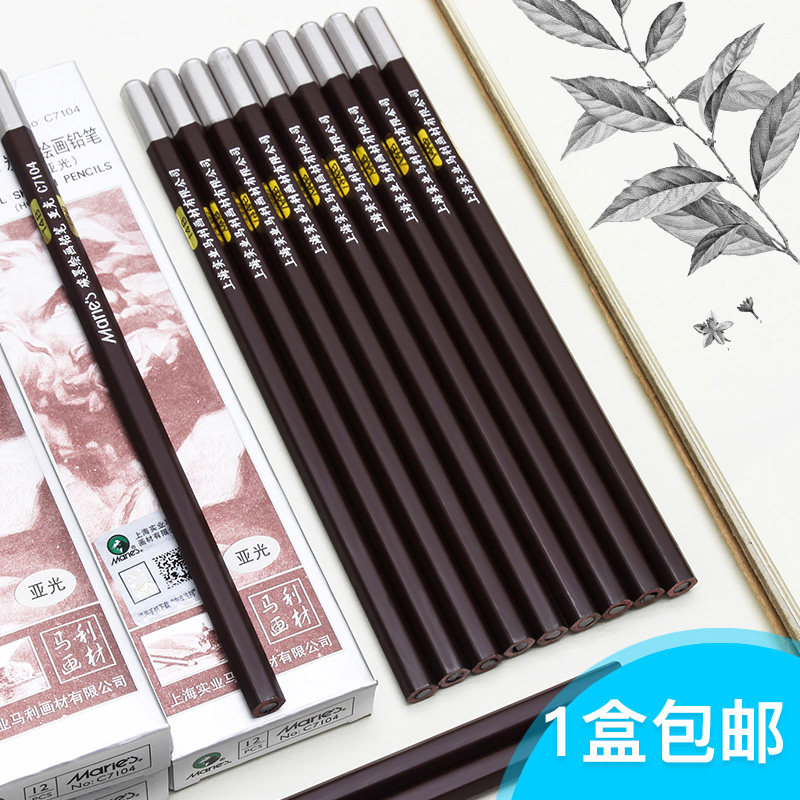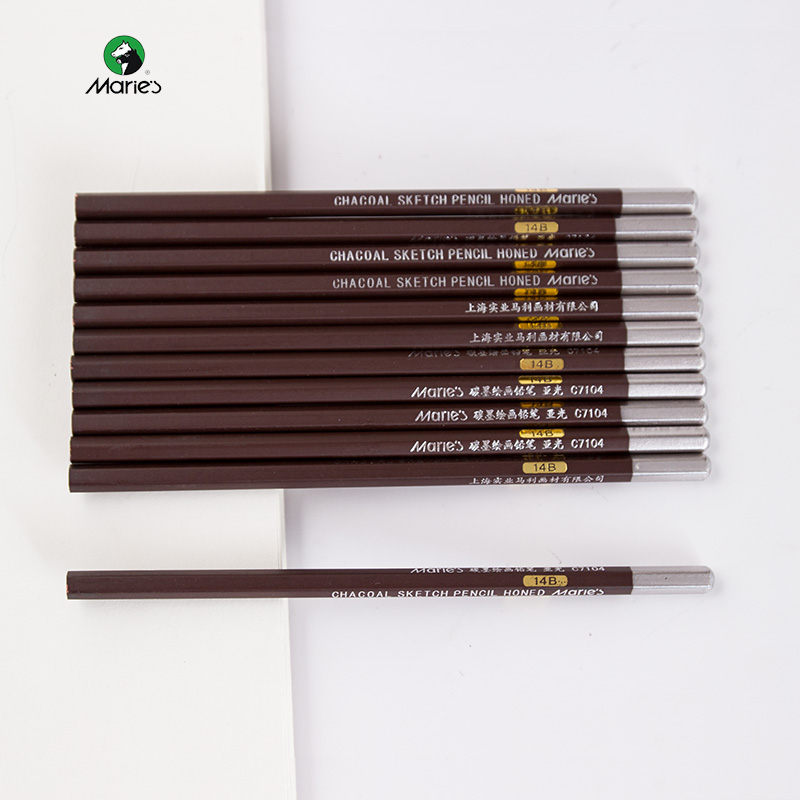 马利14B素描铅笔C7104特浓炭笔专业速写笔素描笔软碳亚光炭墨铅笔