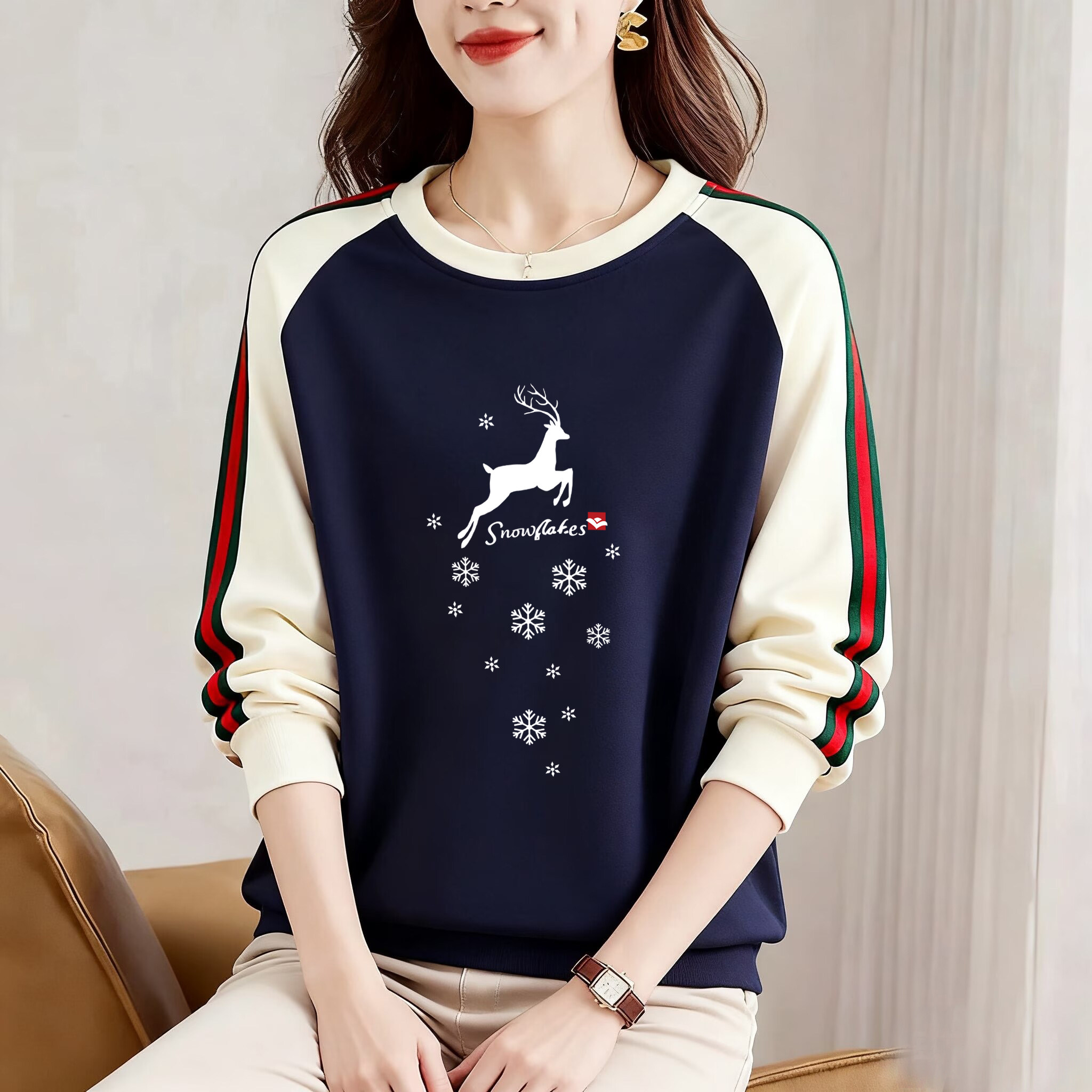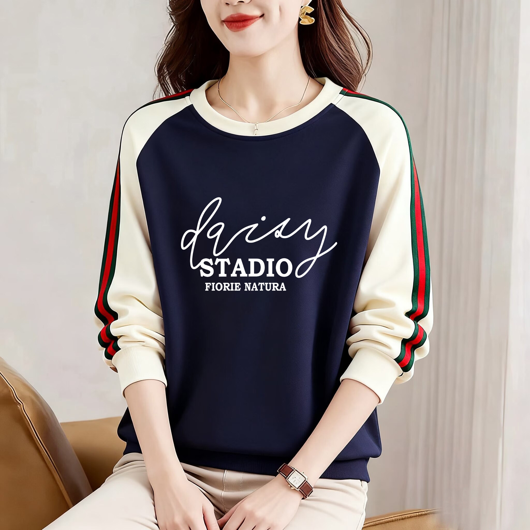 外贸出口专柜女装印花拼色长袖卫衣秋冬休闲百搭显瘦纯棉宽松上衣