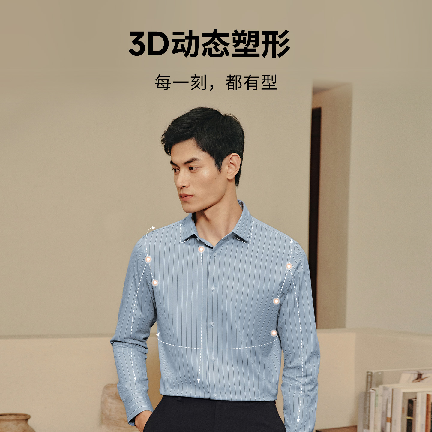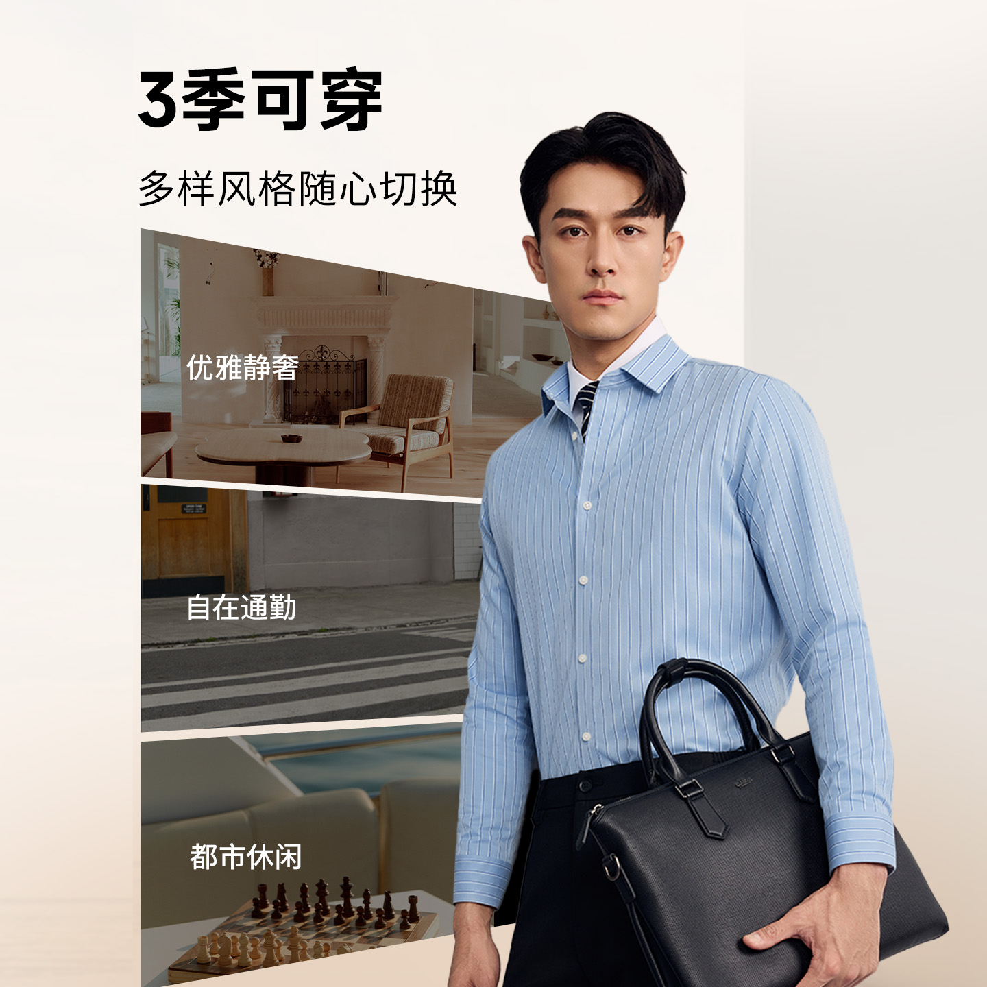【免烫衬衫】金利来新款男士易打理衬衣纯棉长袖衬衫条纹商务男款
