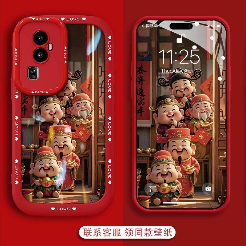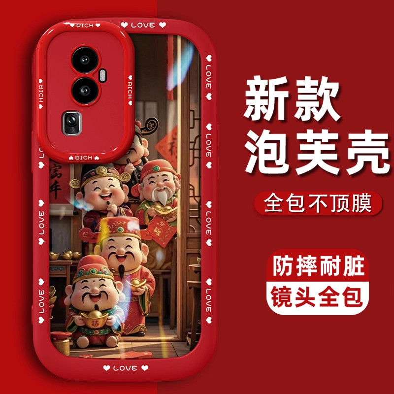 适用于OPPOreno10手机壳五福财神喜临门泡芙壳2025新年高级感