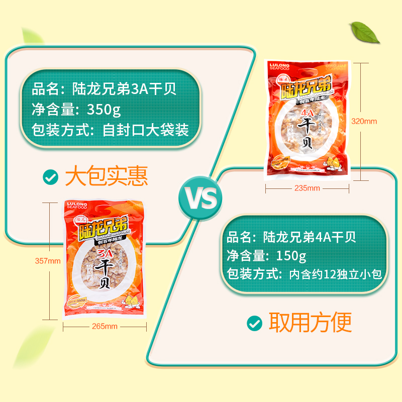 大瑶柱扇贝干 陆龙兄弟干贝350g/袋 3A淡干大包装 经典海鲜干货