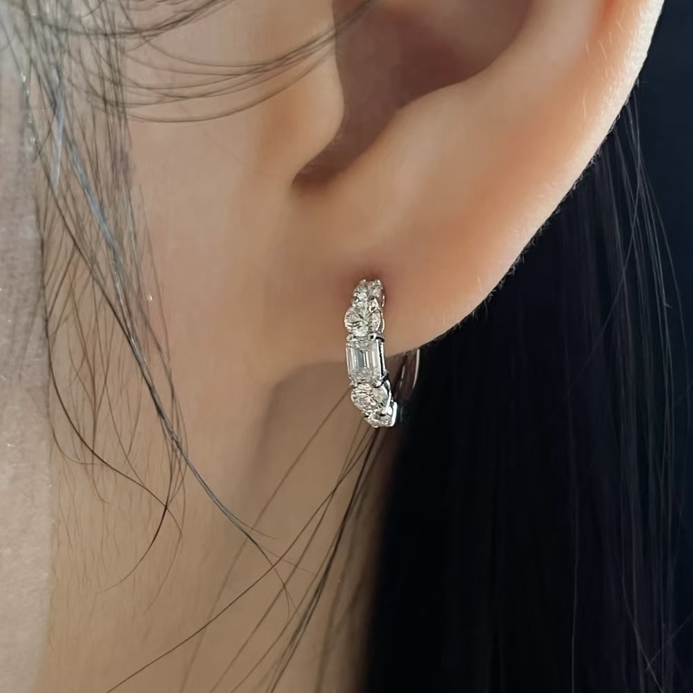 18k金培育钻石耳环排钻耳扣满镶耳钉女一对90分小众高级通勤耳饰
