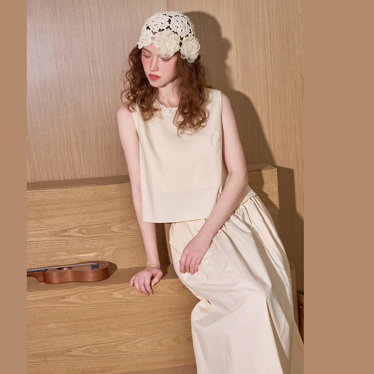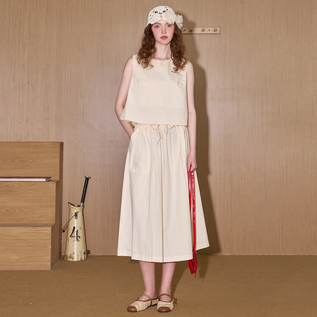 coolhut两件套纯棉休闲简约无袖气质背心半身裙2025夏女套装宽松
