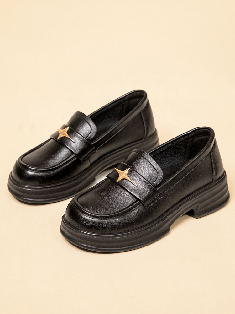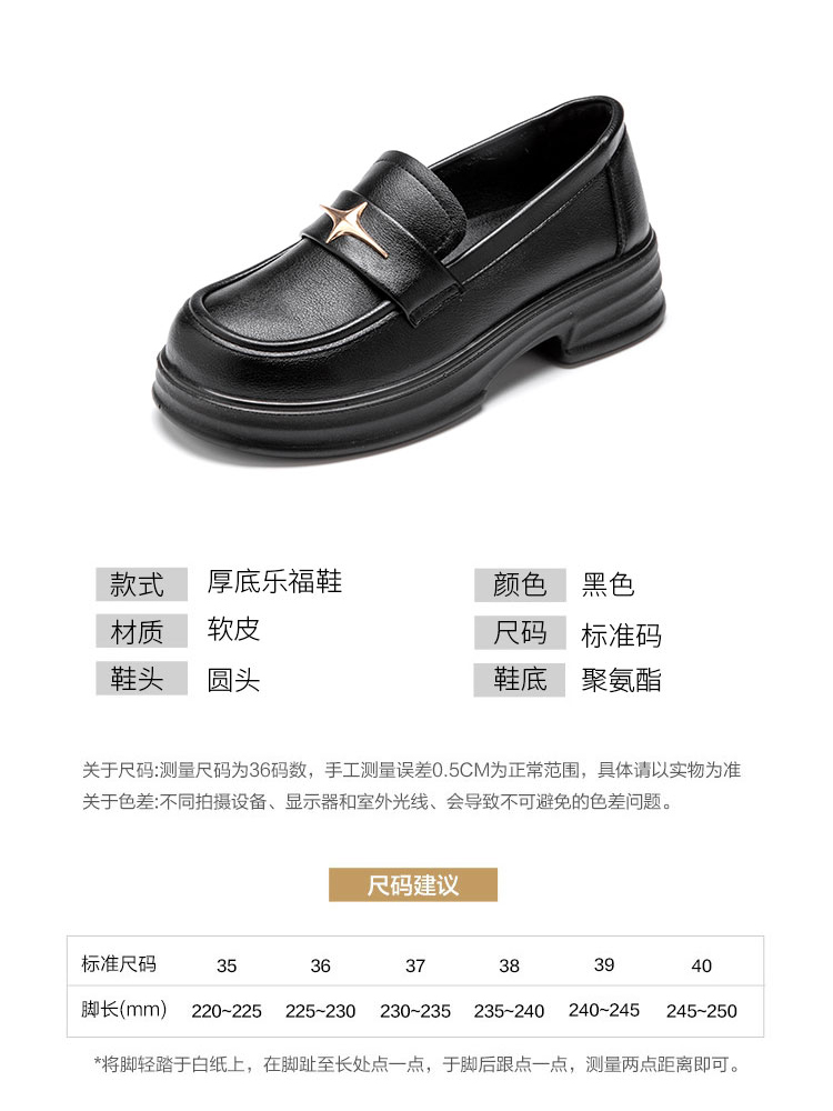 女乐福鞋春秋单鞋黑色深口大码一脚蹬粗跟英伦松糕厚底豆豆小皮鞋