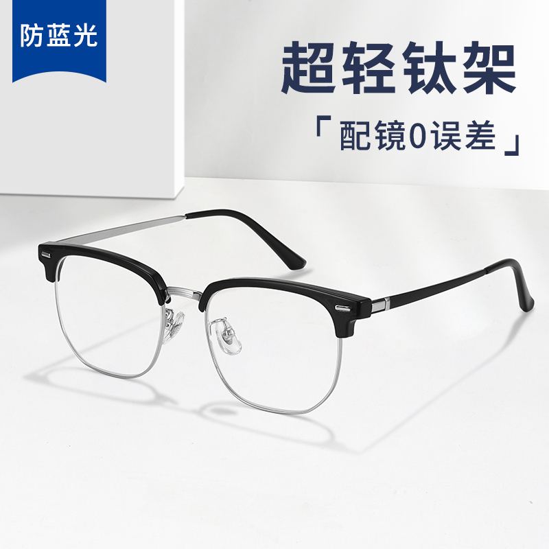 超轻纯钛半框眼镜近视男款专业网上可配度数眼睛架斯文痞帅丹阳女