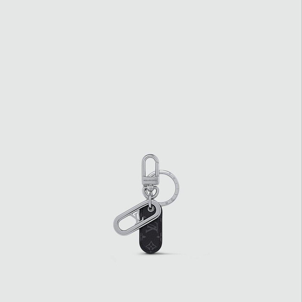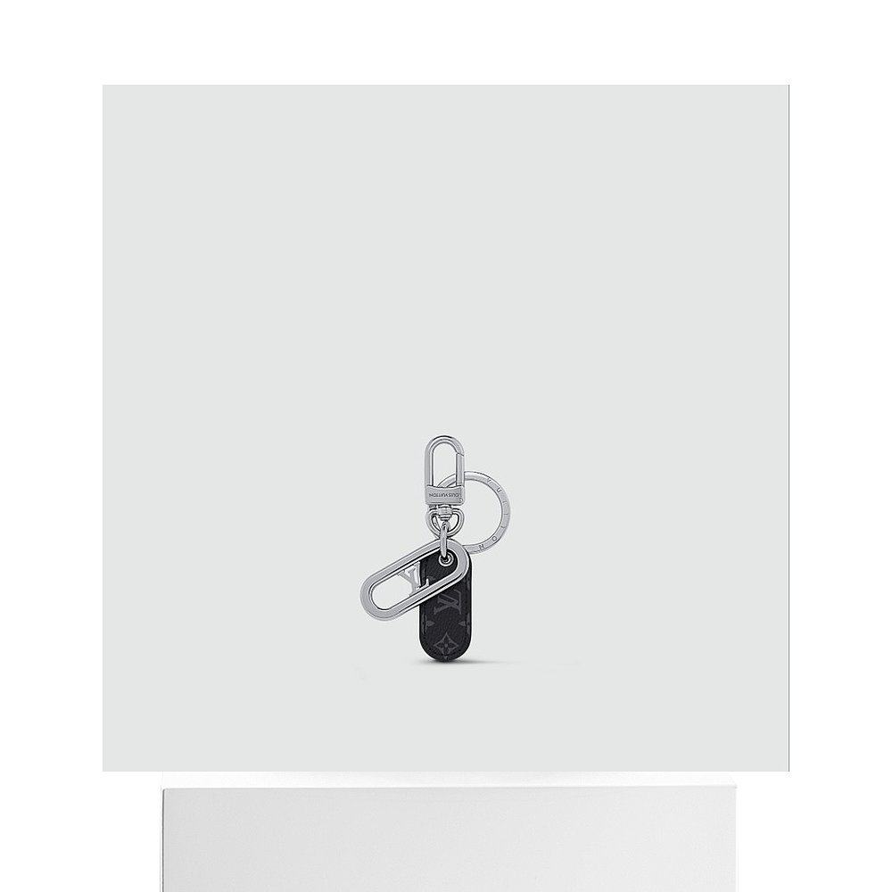 自营1h可退 欧洲直邮LV路易威登男士黑色 银色帆布皮革元素钥匙扣