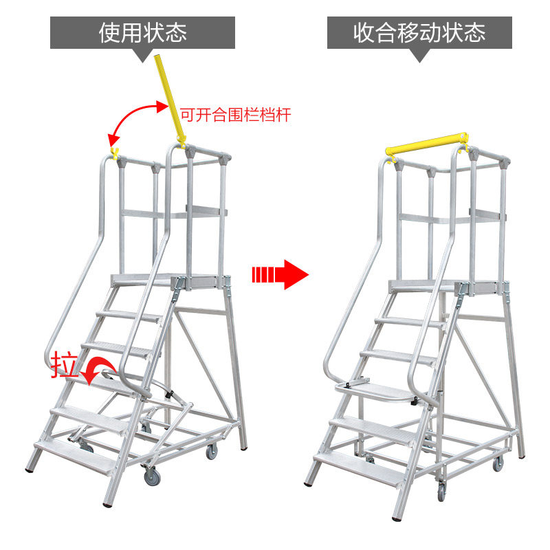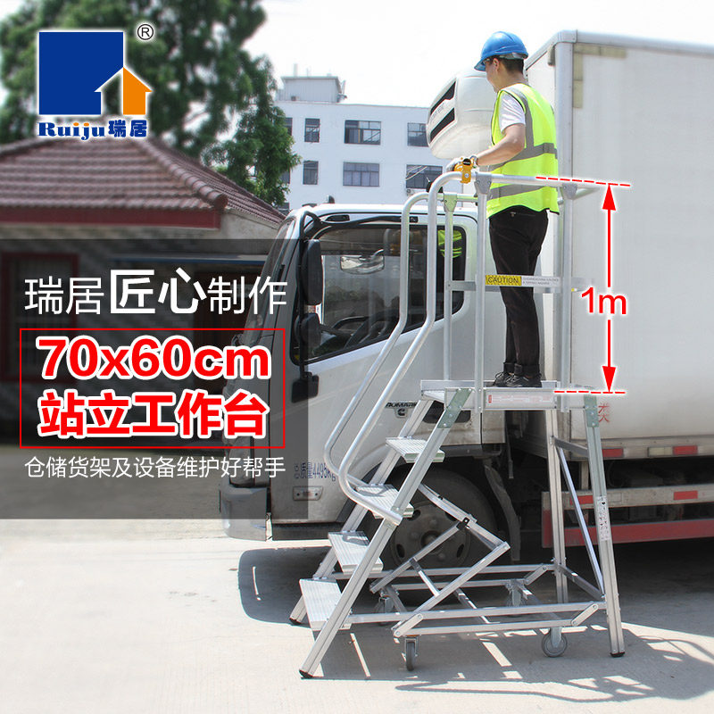瑞居铝合金登高梯移动q平台梯移动梯子带轮平台梯厂家直销脚手架