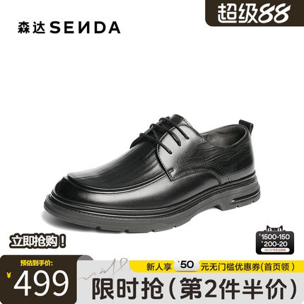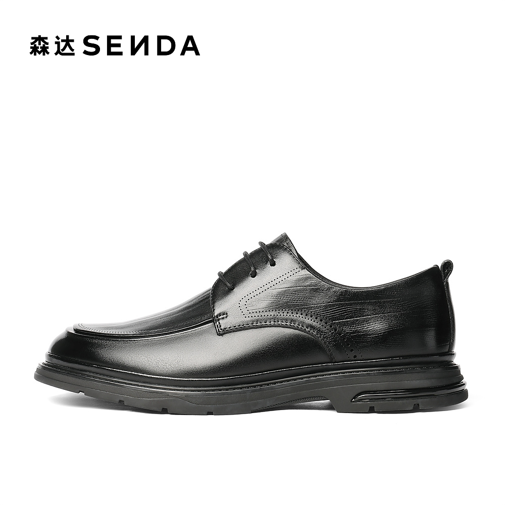森达正装皮鞋男2025秋新商场同款圆头牛皮鞋通勤商务皮鞋1YR01CM5
