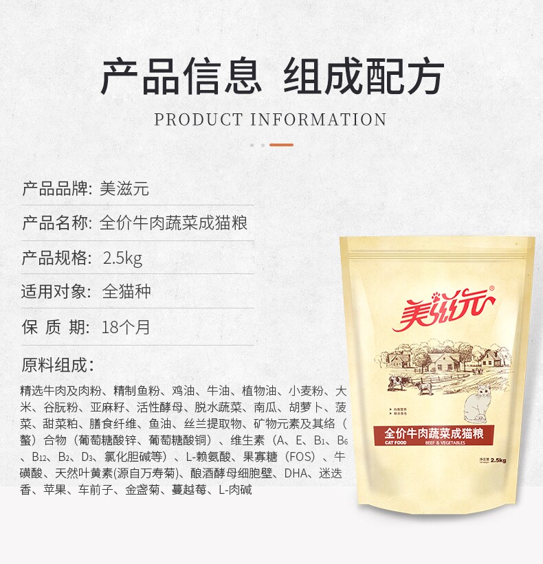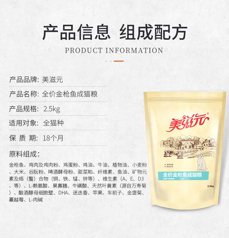 美滋元猫粮成猫全价三文鱼金枪鱼鳕鱼牛肉5斤增肥发腮多省包邮