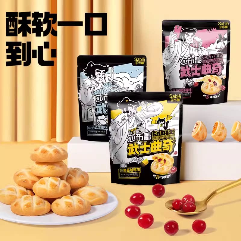 【武士曲奇】莎布蕾爆浆夹心曲奇饼干牛奶鸡蛋蔓越莓独立小包70g