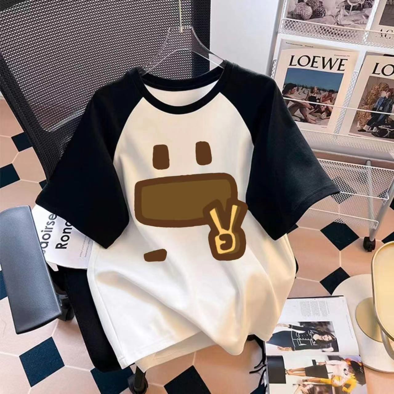 男女童纯棉插肩短袖T恤2025新款时髦拼色中大童百搭半袖上衣