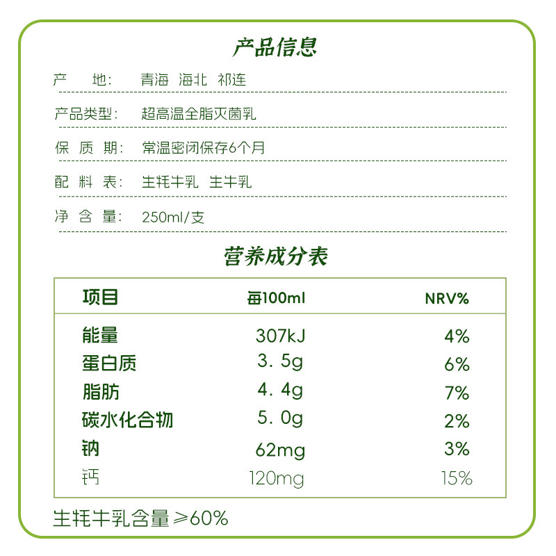 顺丰青藏祁莲祁连山纯牛奶250mlx12支x30箱分期发含60%生牦牛乳
