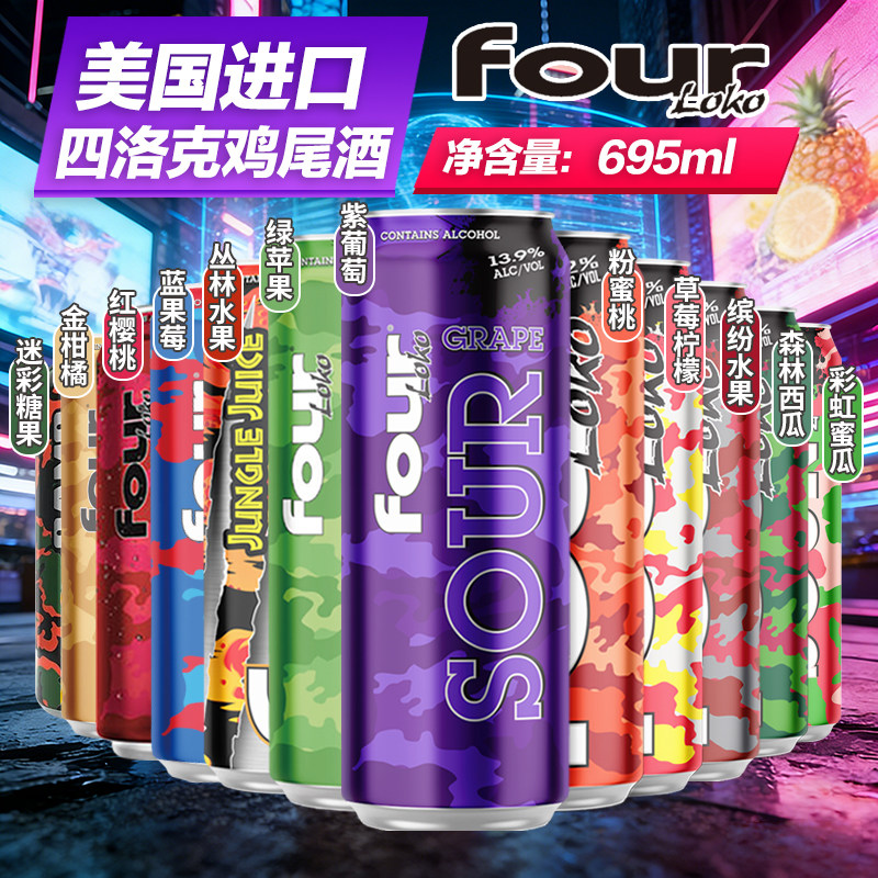 美国进口四洛克鸡尾酒果味预调配制酒微醺烈性酸甜695ml聚会原装