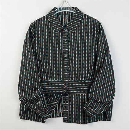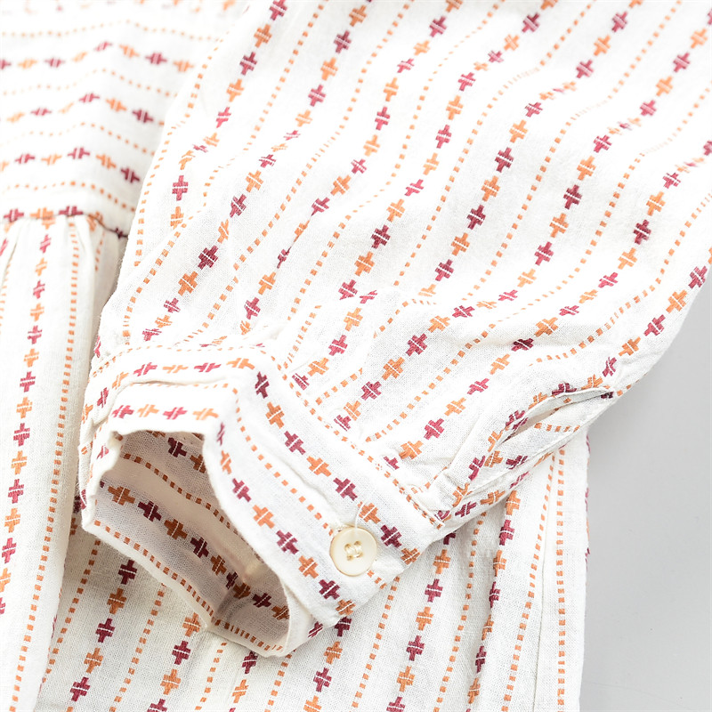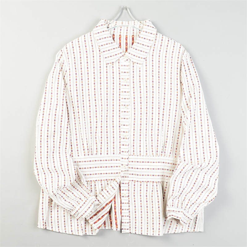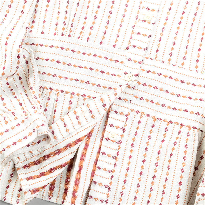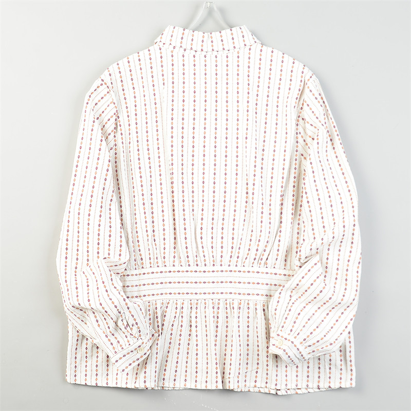 日单刺绣条纹棉麻长袖衬衫女2.24L85813清甜文艺宽松型春休闲上衣