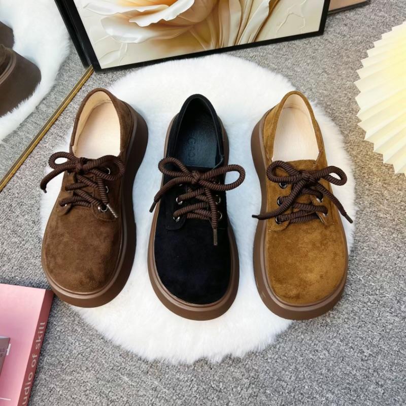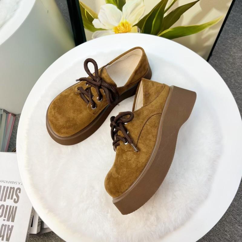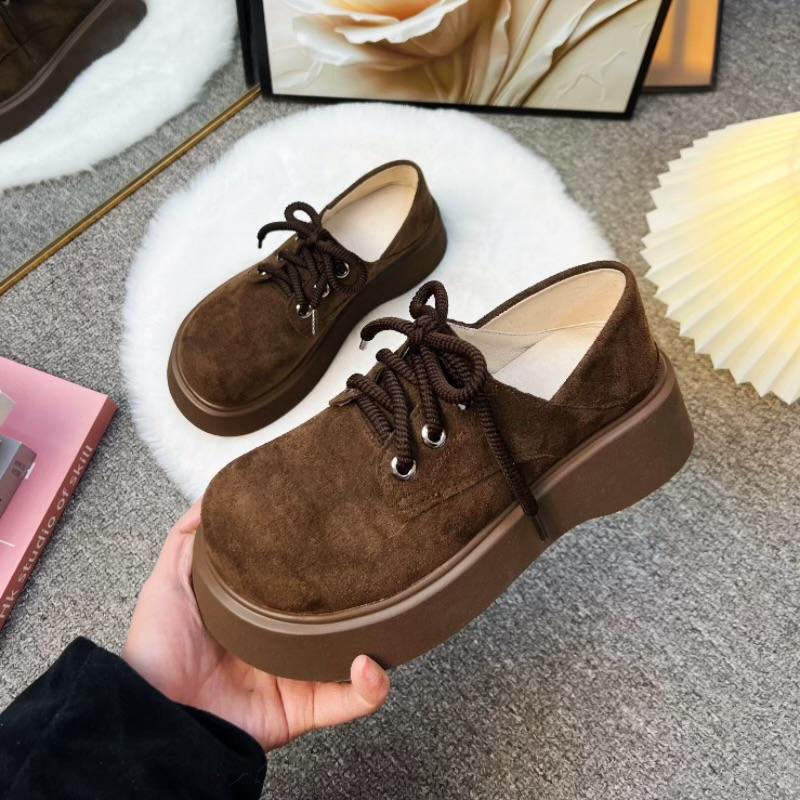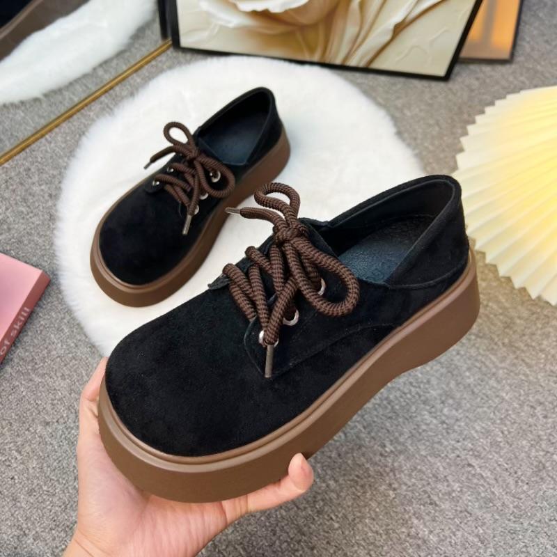 松糕厚底系带乐福鞋女2025新款春季百搭小个子增高棉鞋子博肯单鞋