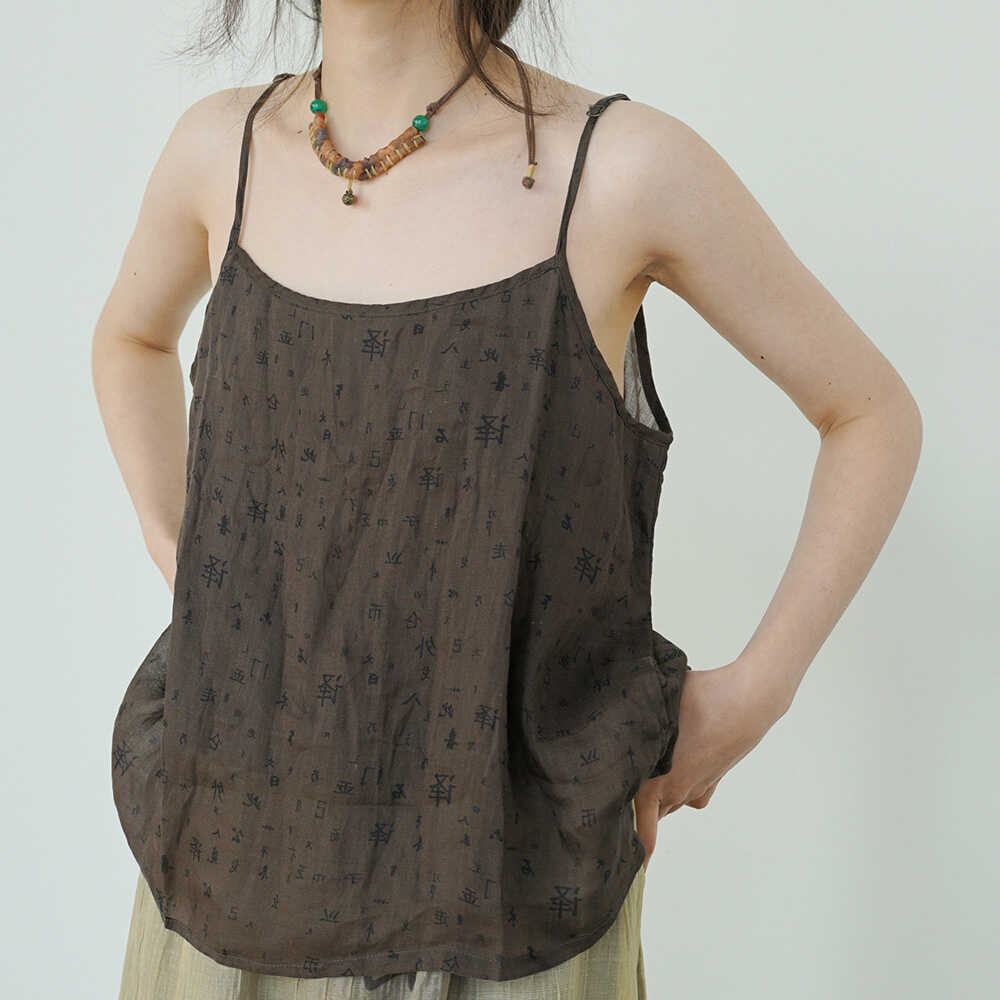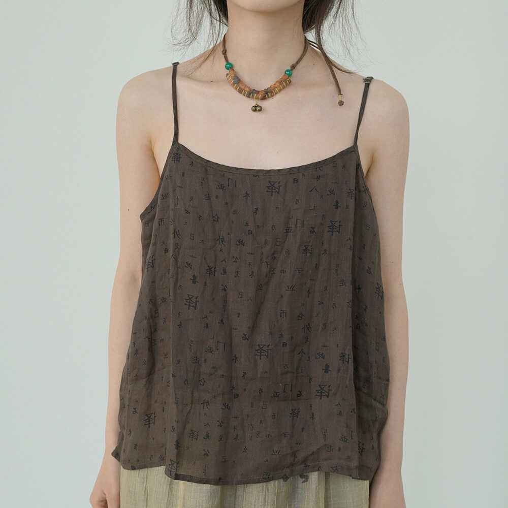 夏季印花薄款苎麻文艺复古上衣女原创宽松大码外穿内搭吊带背心薄