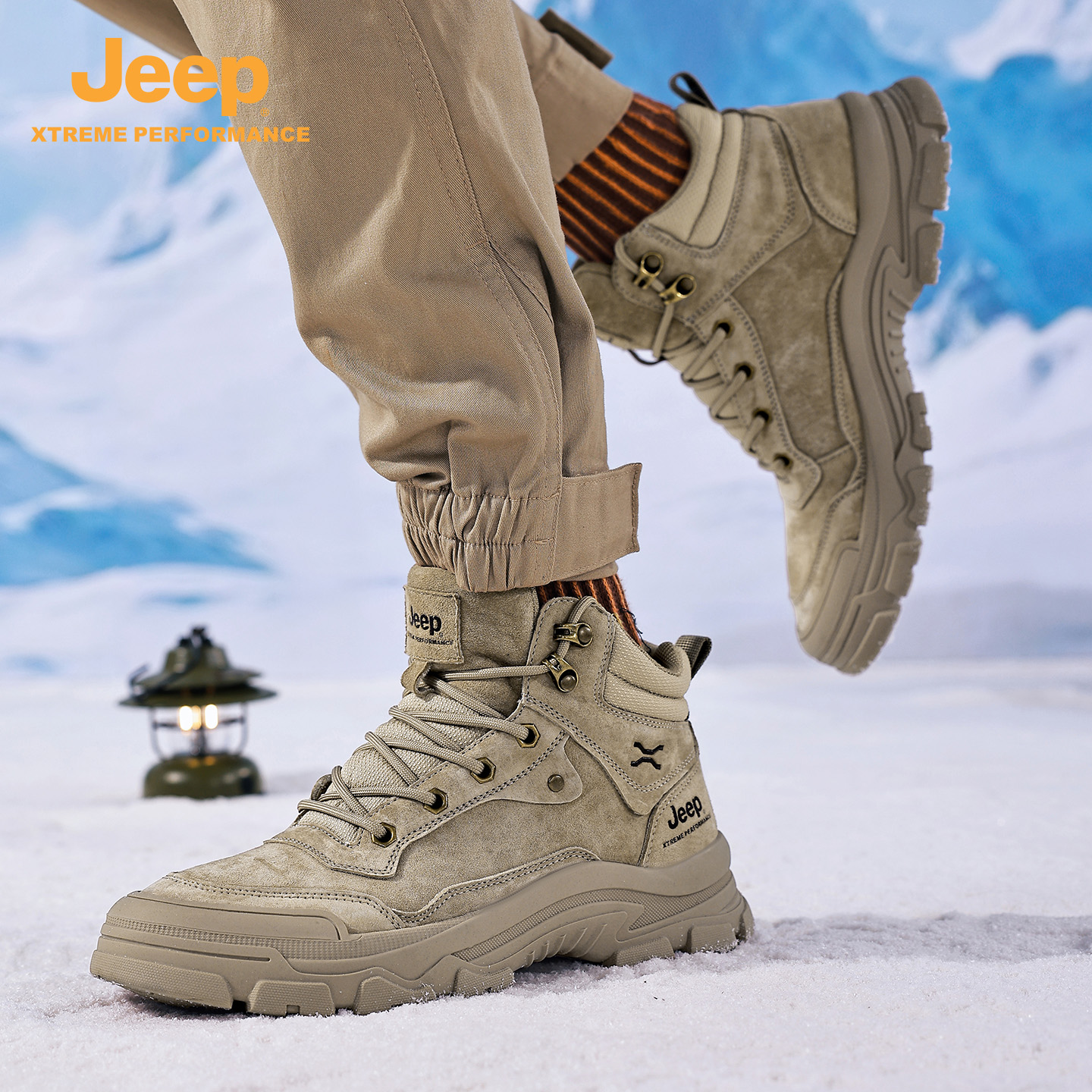 Jeep官方登山鞋男防泼水防滑减震中帮徒步鞋增高抓地轻便马丁靴冬