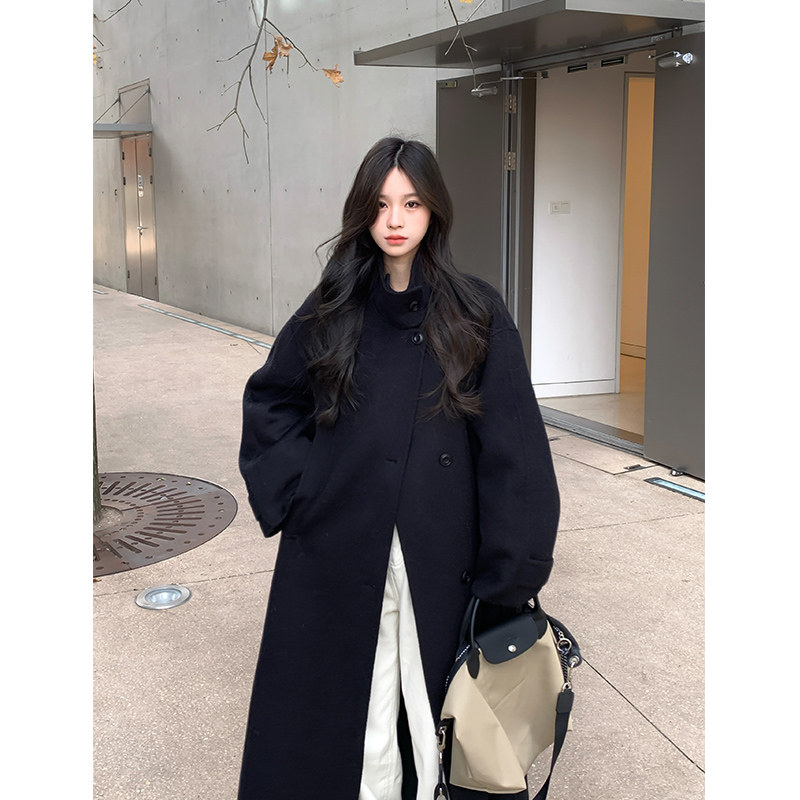 Adan 浪漫巴黎奶白色立领双面呢大衣冬季宽松慵懒羊毛毛呢外套女