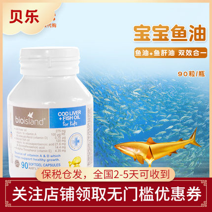 澳洲进口Bio island鳕鱼肝油宝宝儿童婴幼儿DHA鱼肝油90粒