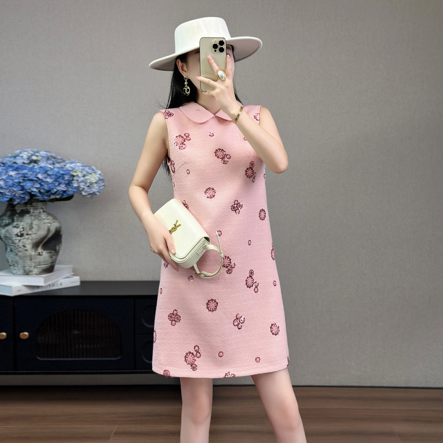 刺绣背心裙子女装2025新款秋季小个子绣花高级感气质千金连衣裙