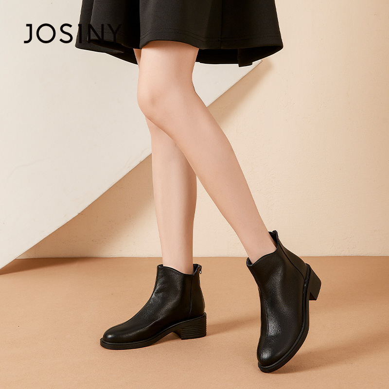卓诗尼冬季新款女加绒加厚时装靴厚底法式切尔西靴短筒靴休闲百搭