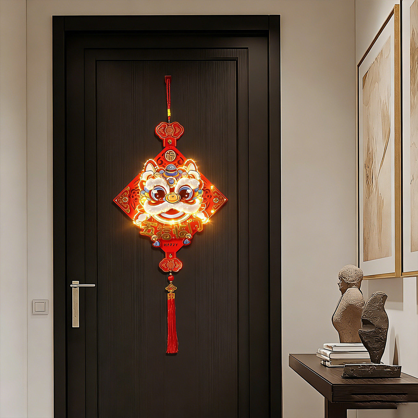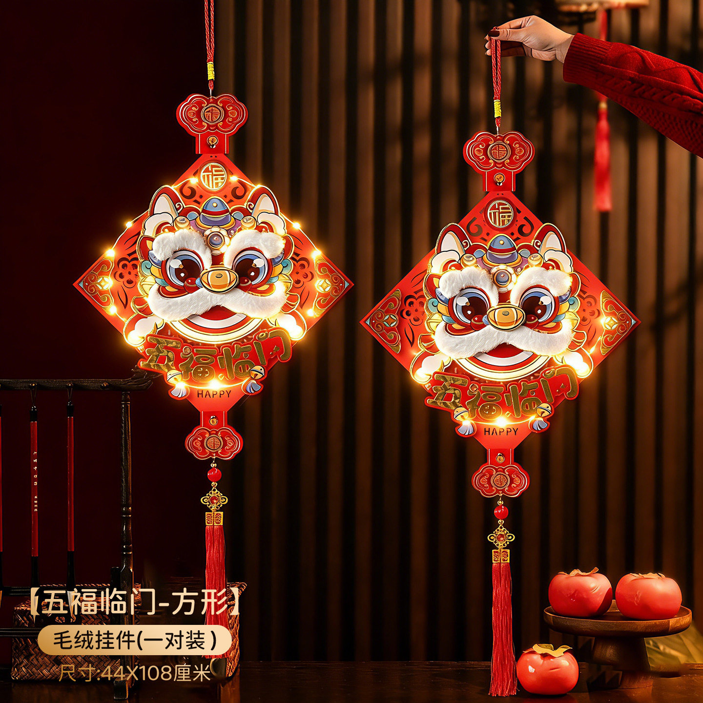 【舞狮闹春-方形】2026新款立体醒狮挂件亮灯喜庆挂饰背景墙装饰