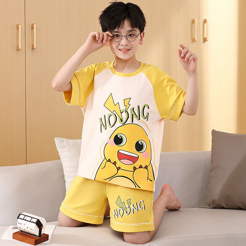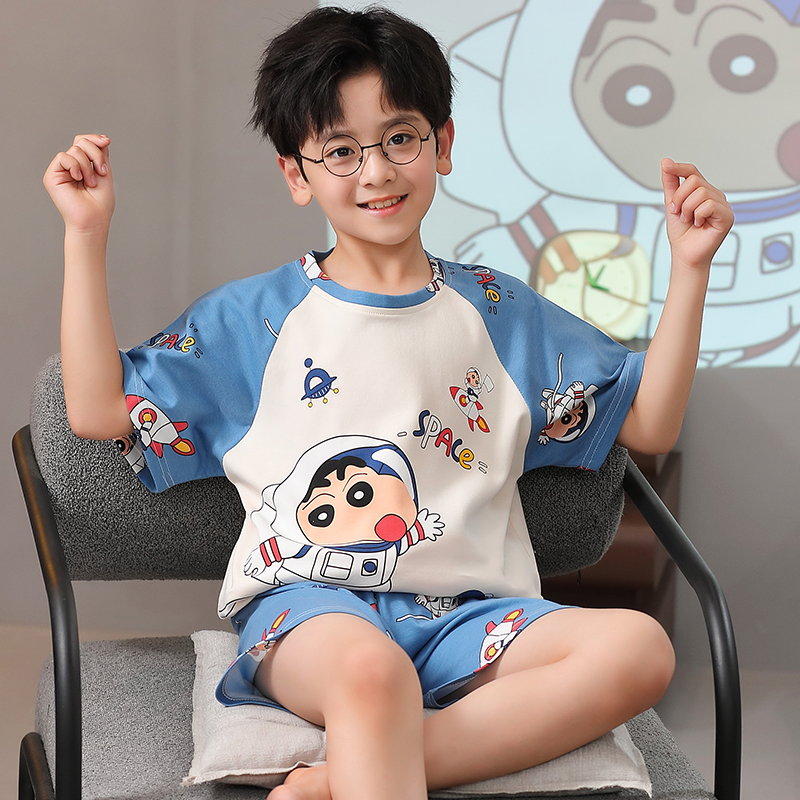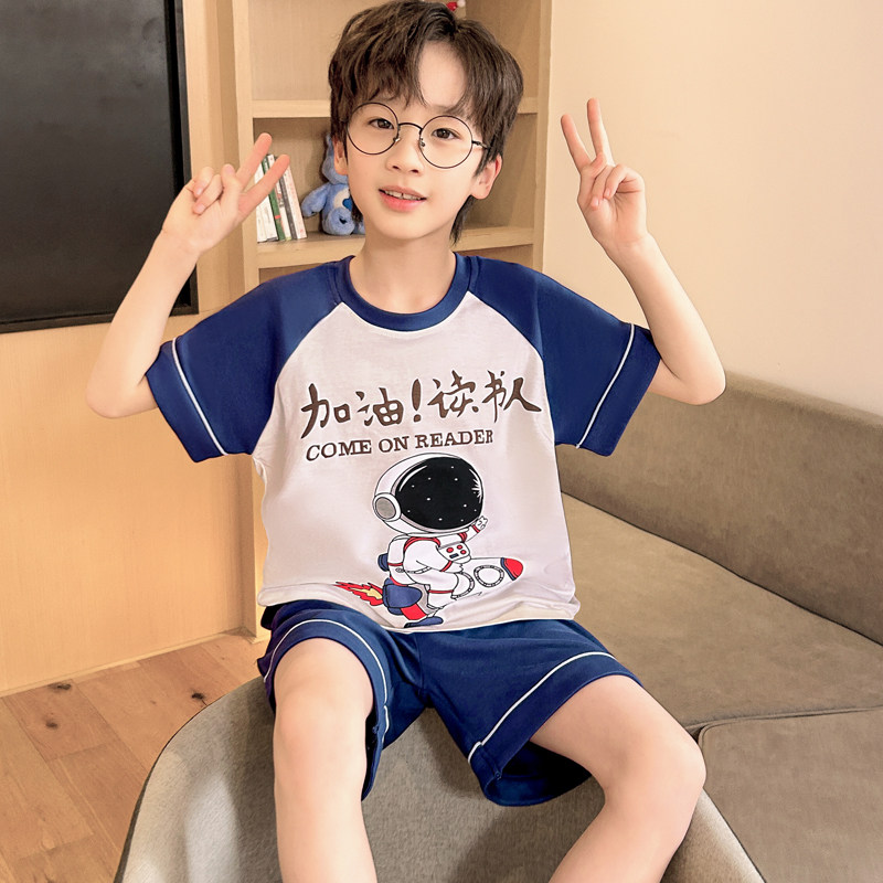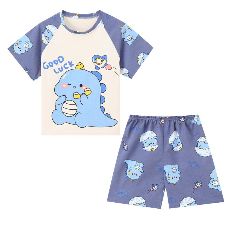 纯棉儿童睡衣男童夏季薄款短袖套装宝宝男孩中大童恐龙卡通家居服