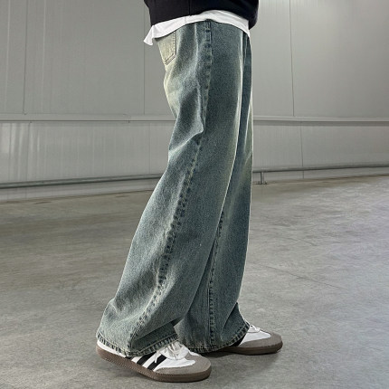 MRCYC复古水洗做旧牛仔裤男秋季新款韩系潮流宽松阔腿直筒裤休闲