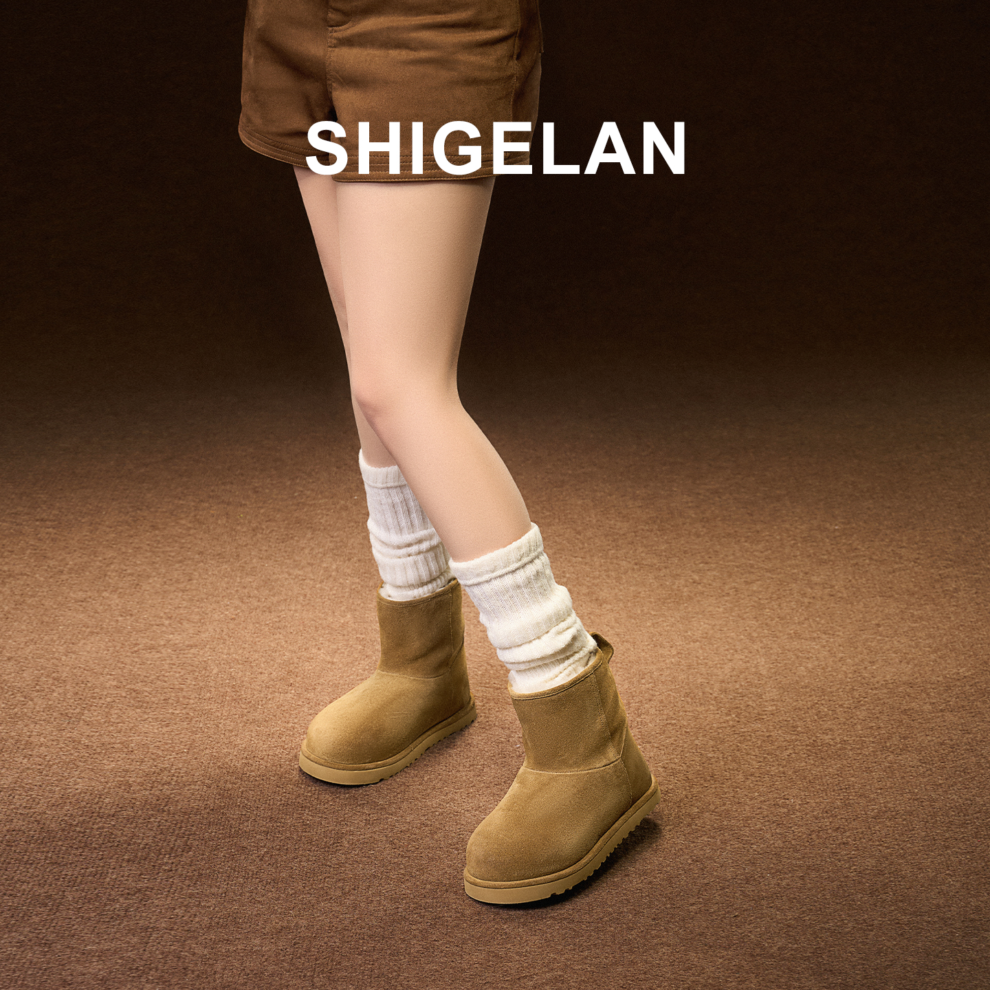 诗歌兰2025冬季复古加绒雪地靴女鞋厚底增高短筒棉靴加厚保暖女靴
