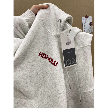 美式复古慵懒风潮牌字母连帽卫衣女秋冬重磅加绒保暖大码套头外套