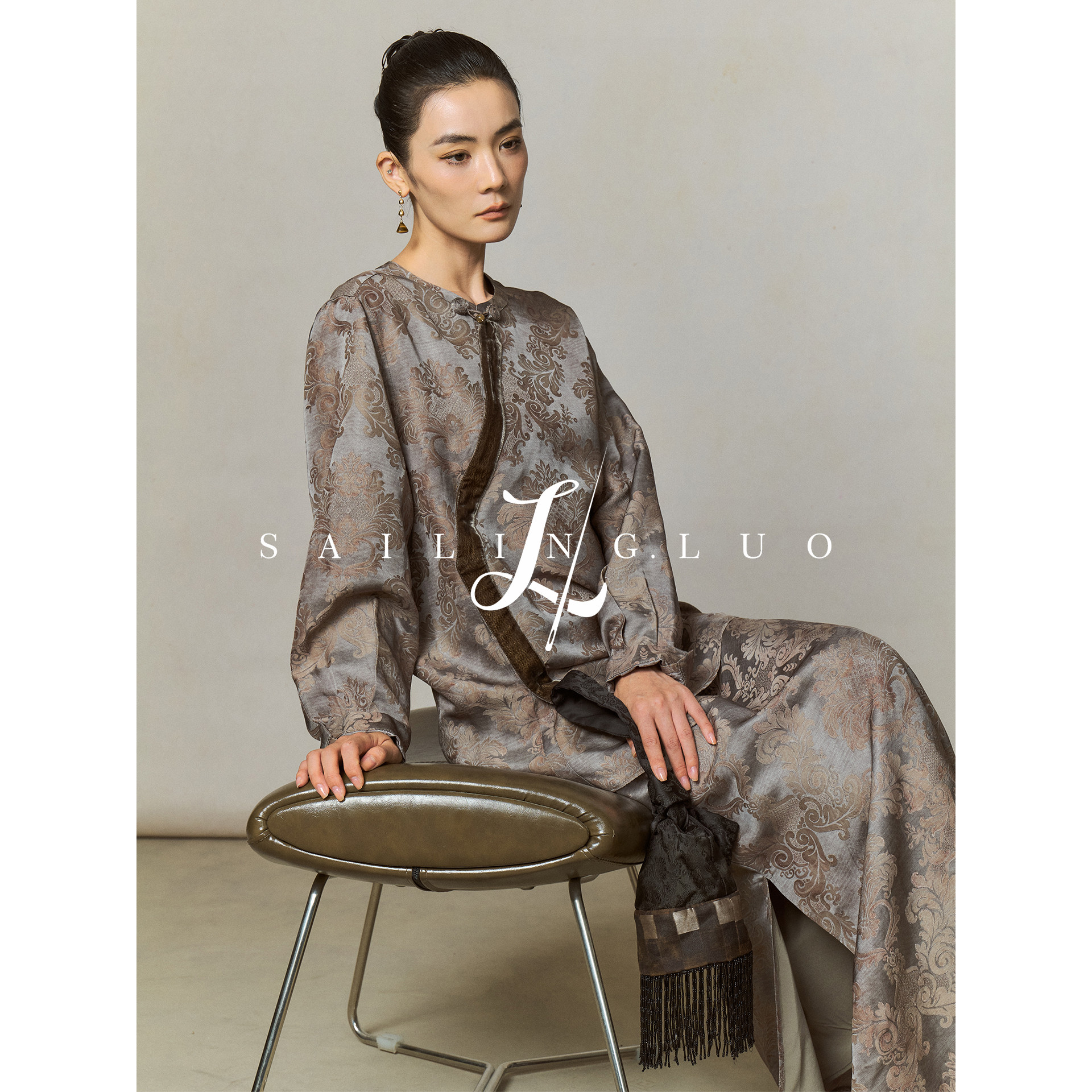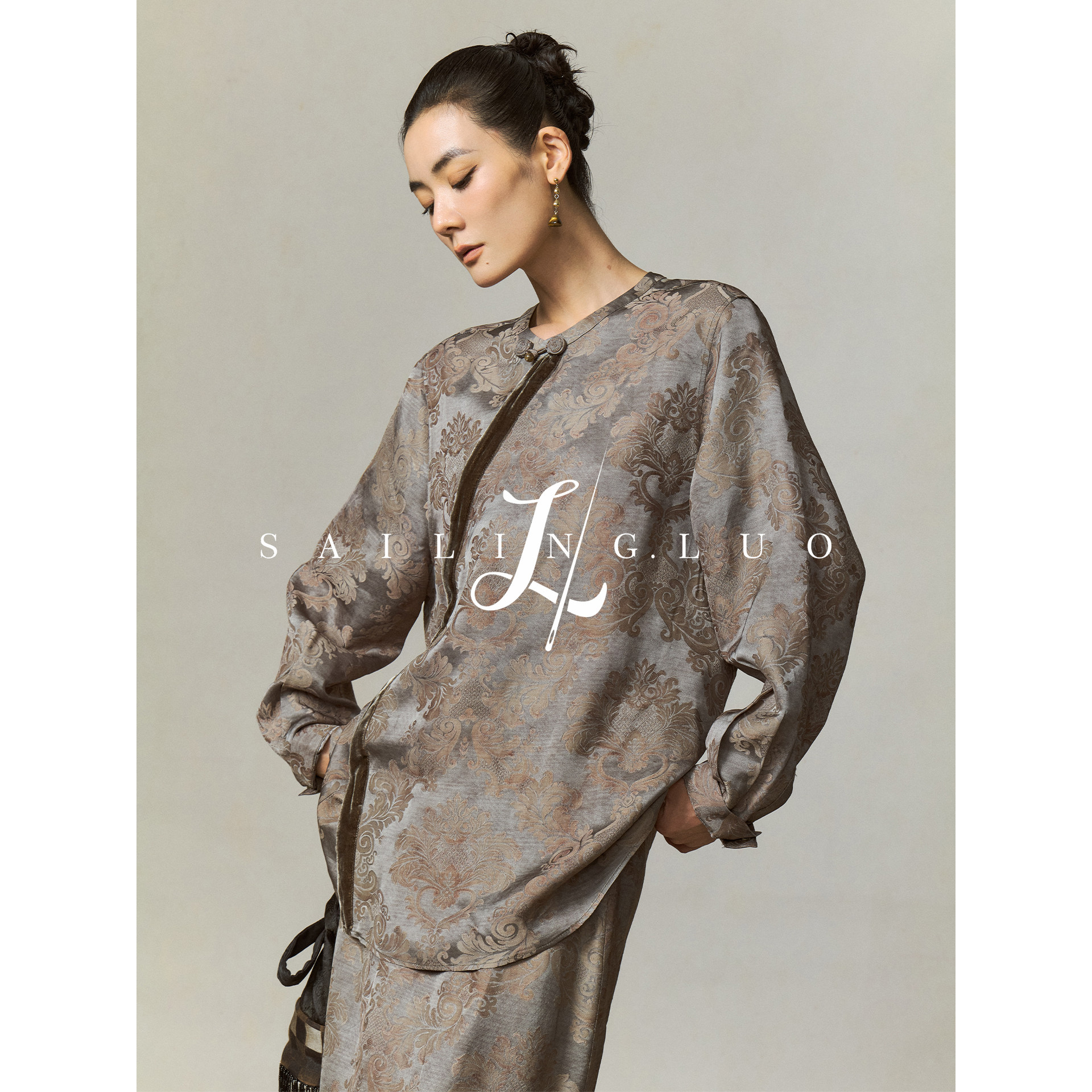 SailingLUO/25秋装新款人丝中式斜门襟衬衫+微鱼尾开叉半裙套装
