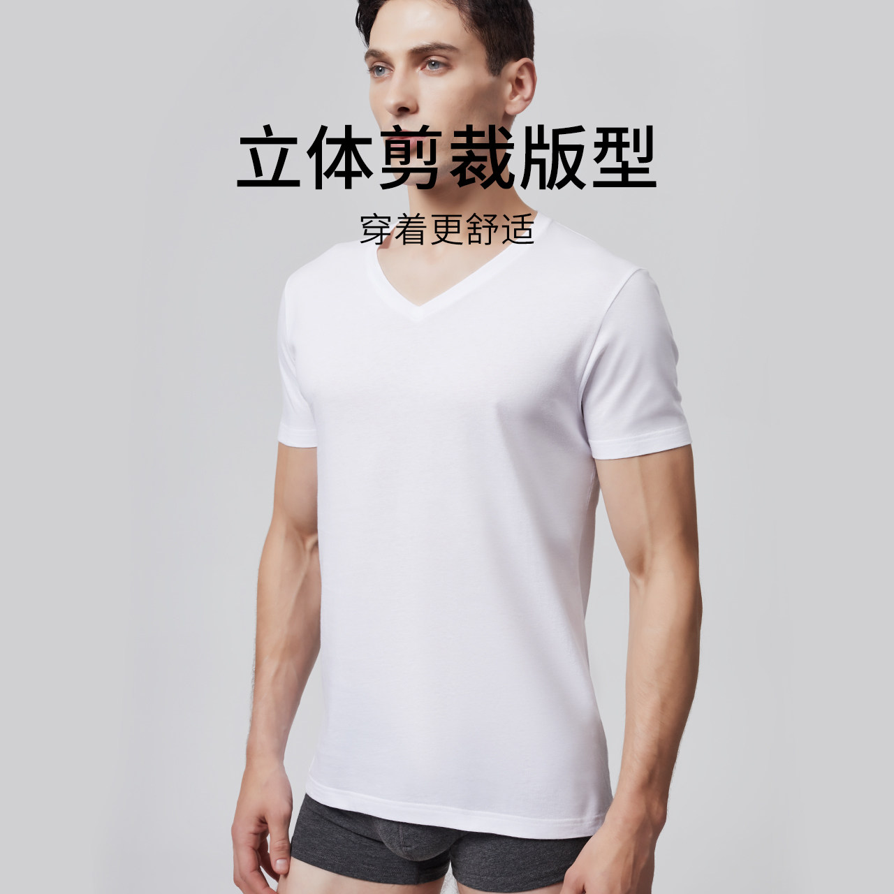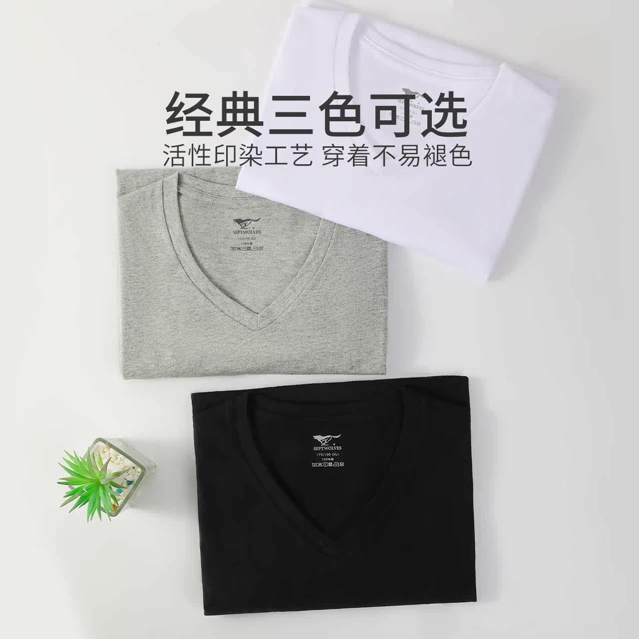 七匹狼全棉男士短袖男款内衣内搭T恤纯棉V字领体恤鸡心领老头汗衫
