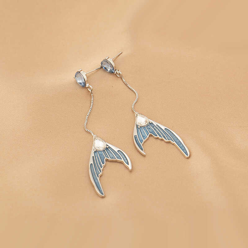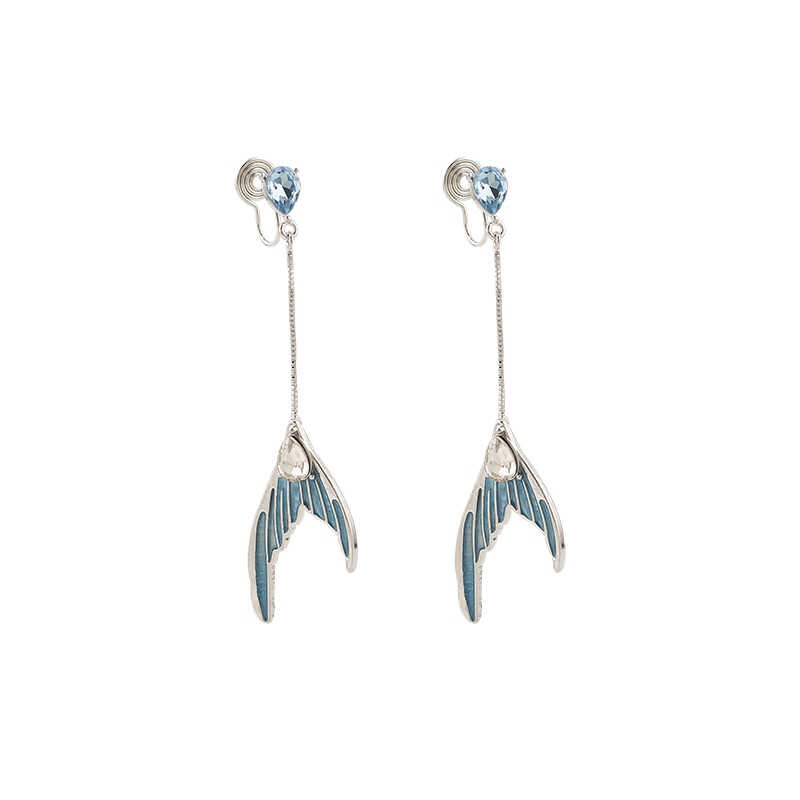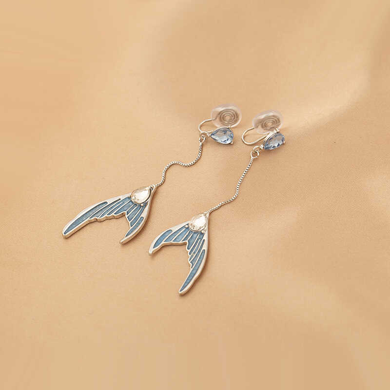 蓝色鱼尾长款耳环时尚气质高级感海边度假耳饰女蚊香盘无耳洞耳夹