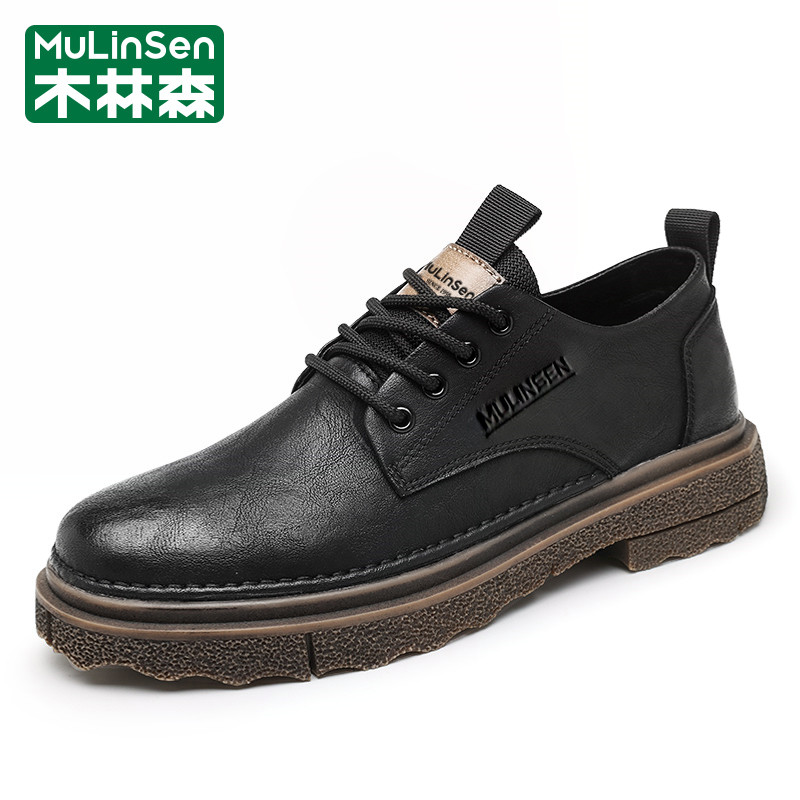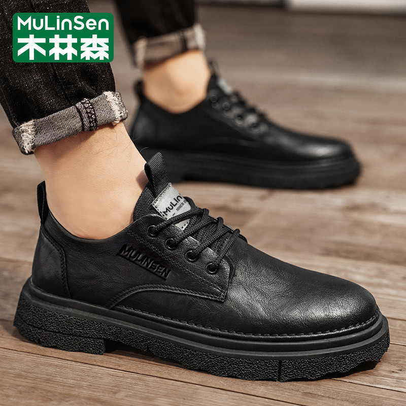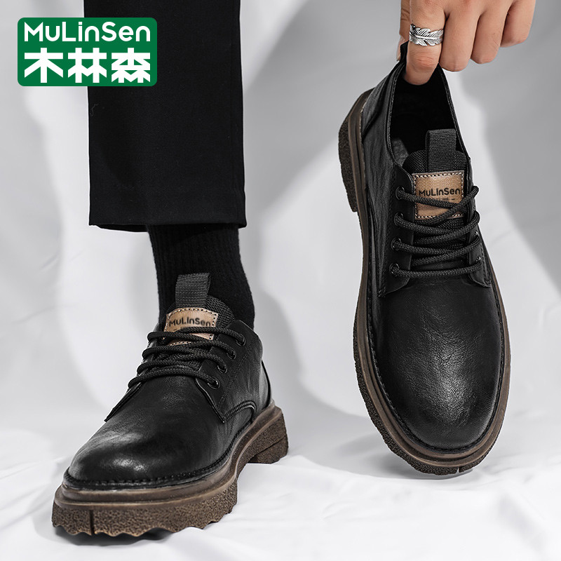 木林森皮鞋男款冬季英伦风商务正装大头工装马丁休闲厚底增高潮鞋