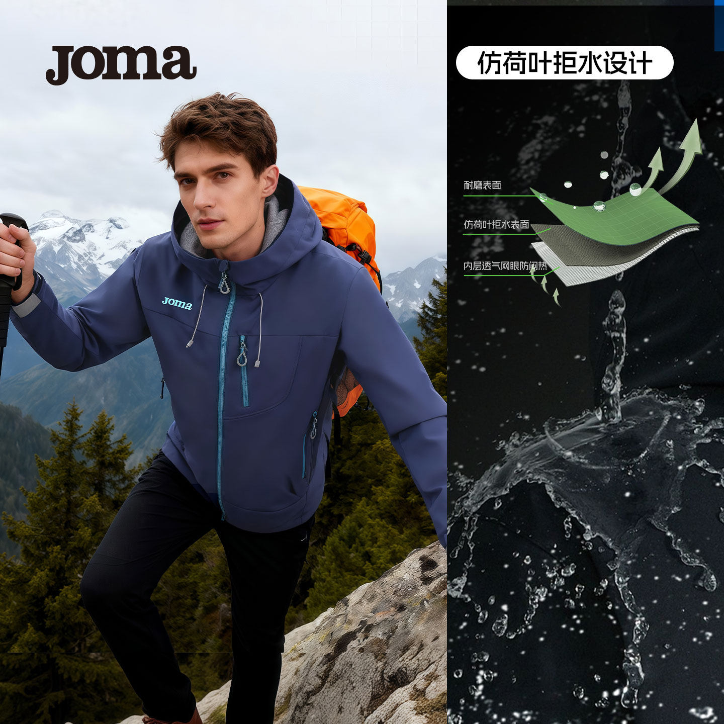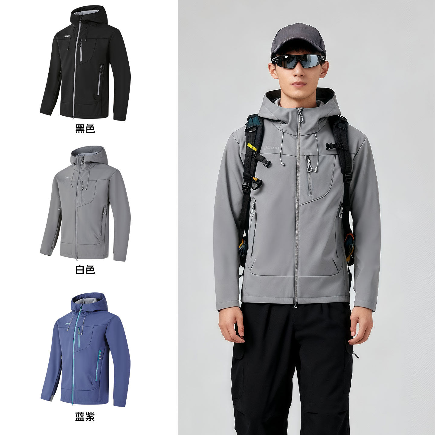 Joma25秋冬新款加绒软壳外套男女同款通勤防泼水防风连帽外套通勤