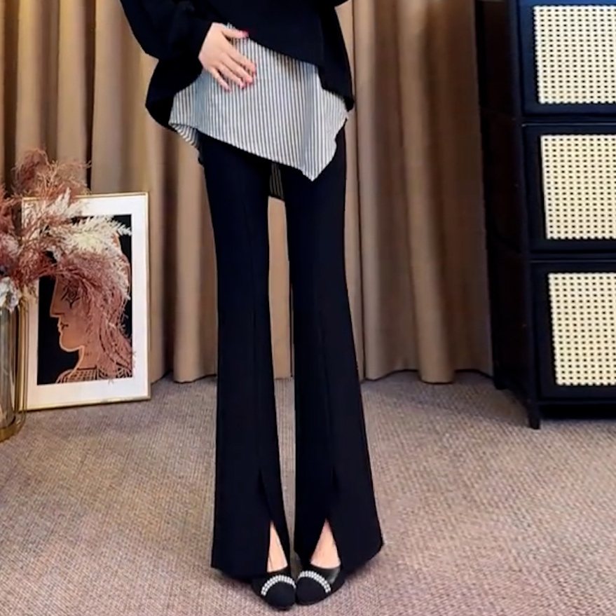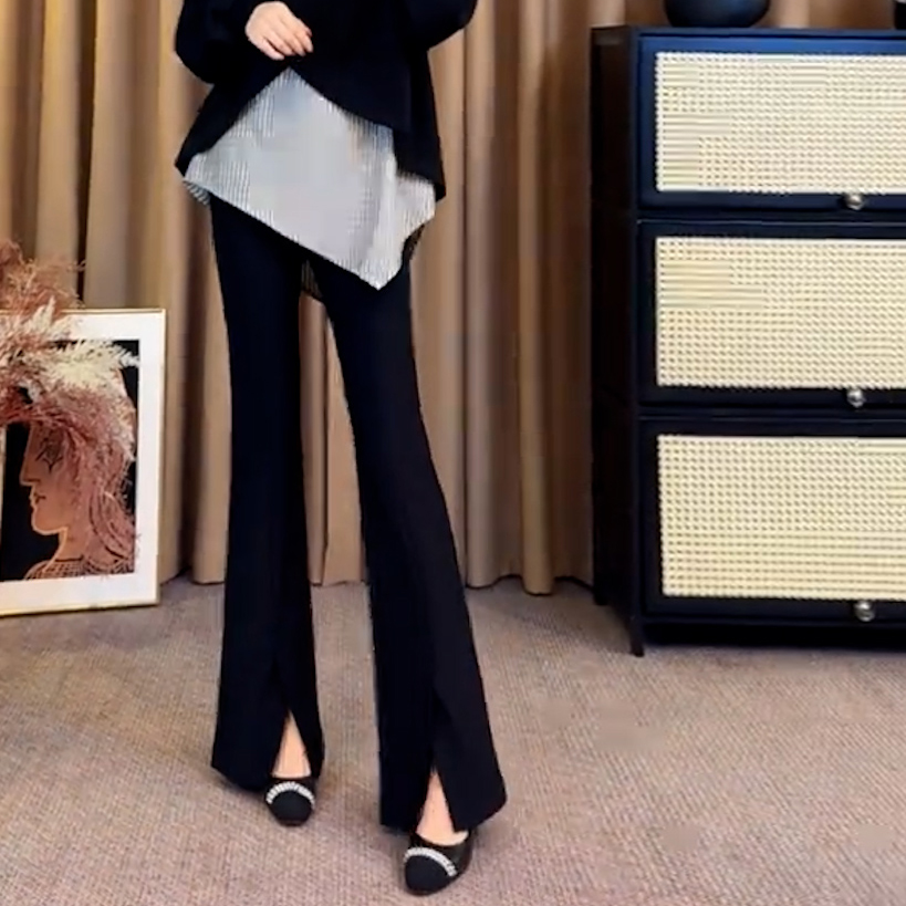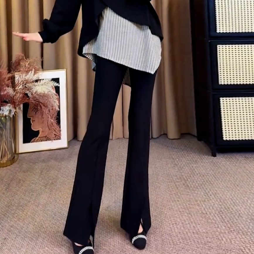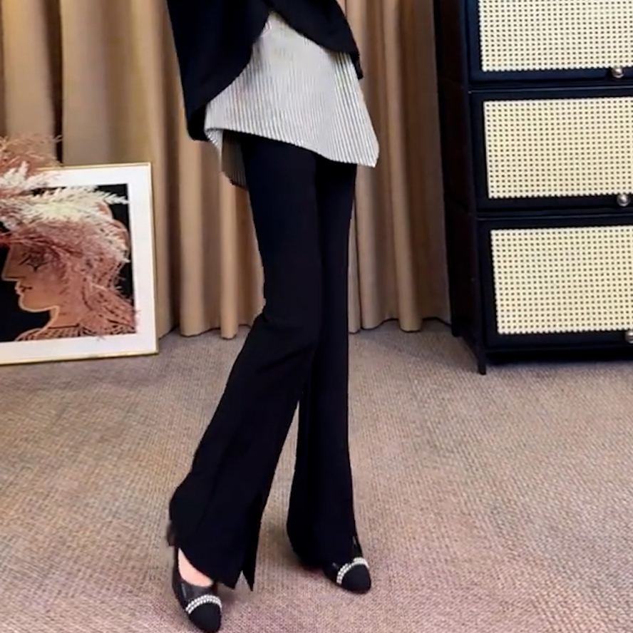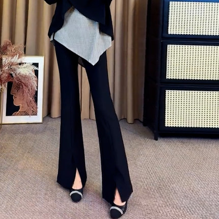 黑色开叉微喇叭裤女秋冬季2025新款小个子高腰修身弹力垂感西装裤