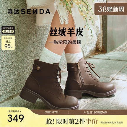 森达羊皮马丁靴25冬新商场同款