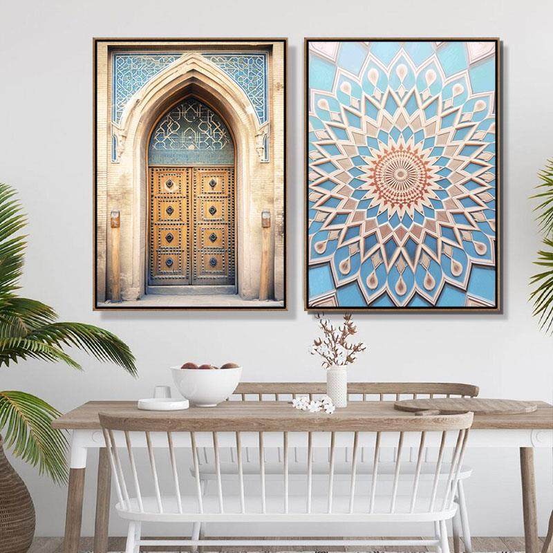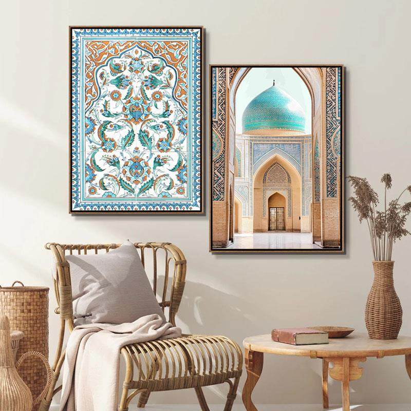 摩洛哥风格建筑壁画阿拉伯民族酒店餐厅客厅沙发装饰画青绿色系列