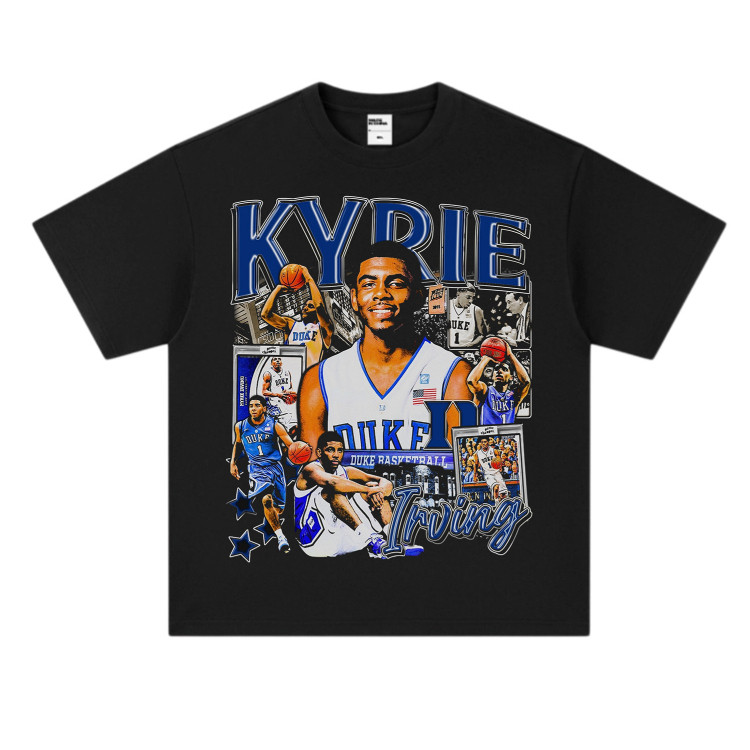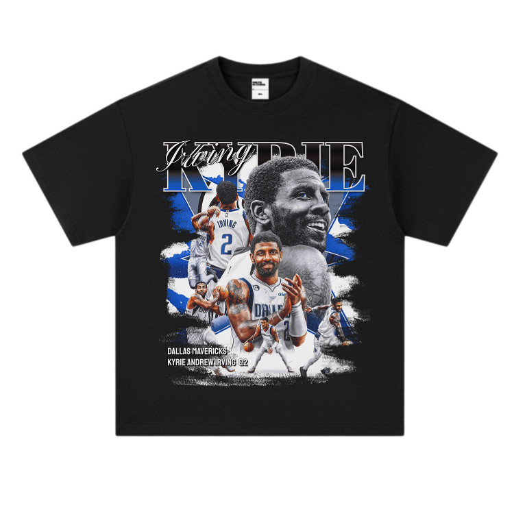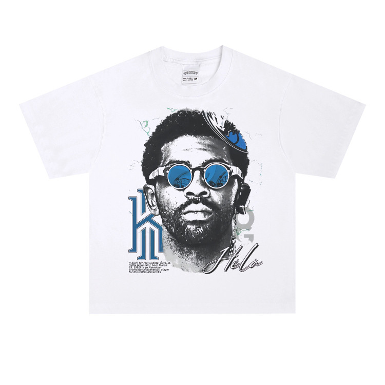 欧文Kyrie Irving篮球星人像印花美式高街重磅纯棉短袖小领口t恤