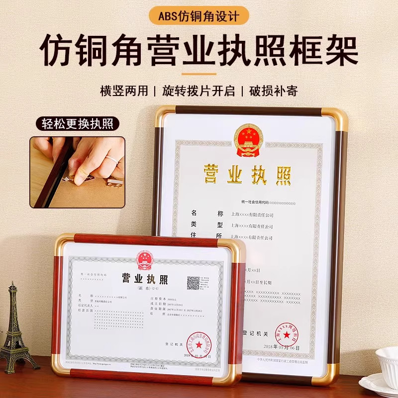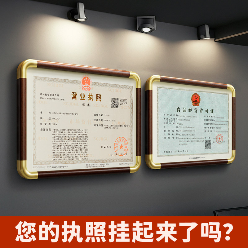 工商营业执照框架挂墙a4证件框a3卫生许可证展示框正副本相框餐饮