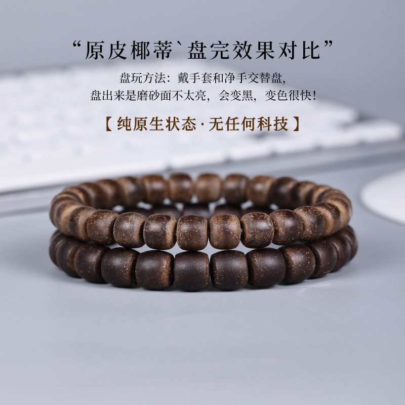 天然原生态原色椰蒂手串单圈无科技老型直切文玩佛珠男女款手链