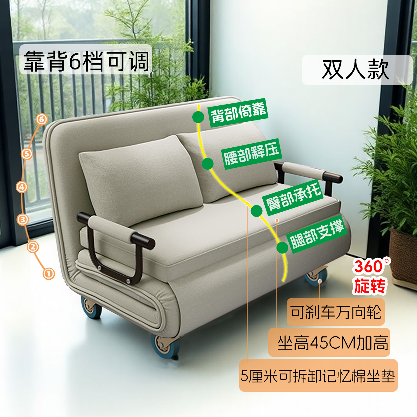 可移动沙发床带轮子办公沙发小户型单人客厅书房电脑椅阳台折叠床