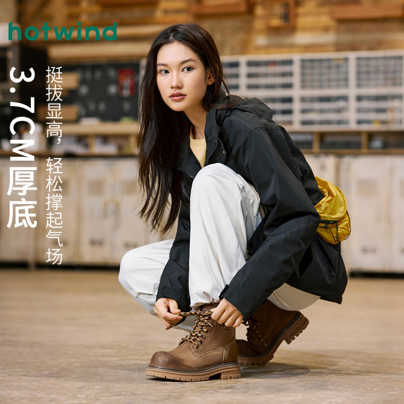 热风厚底马丁靴女款2025年冬季新款百搭复古工装靴粗跟增高女鞋子