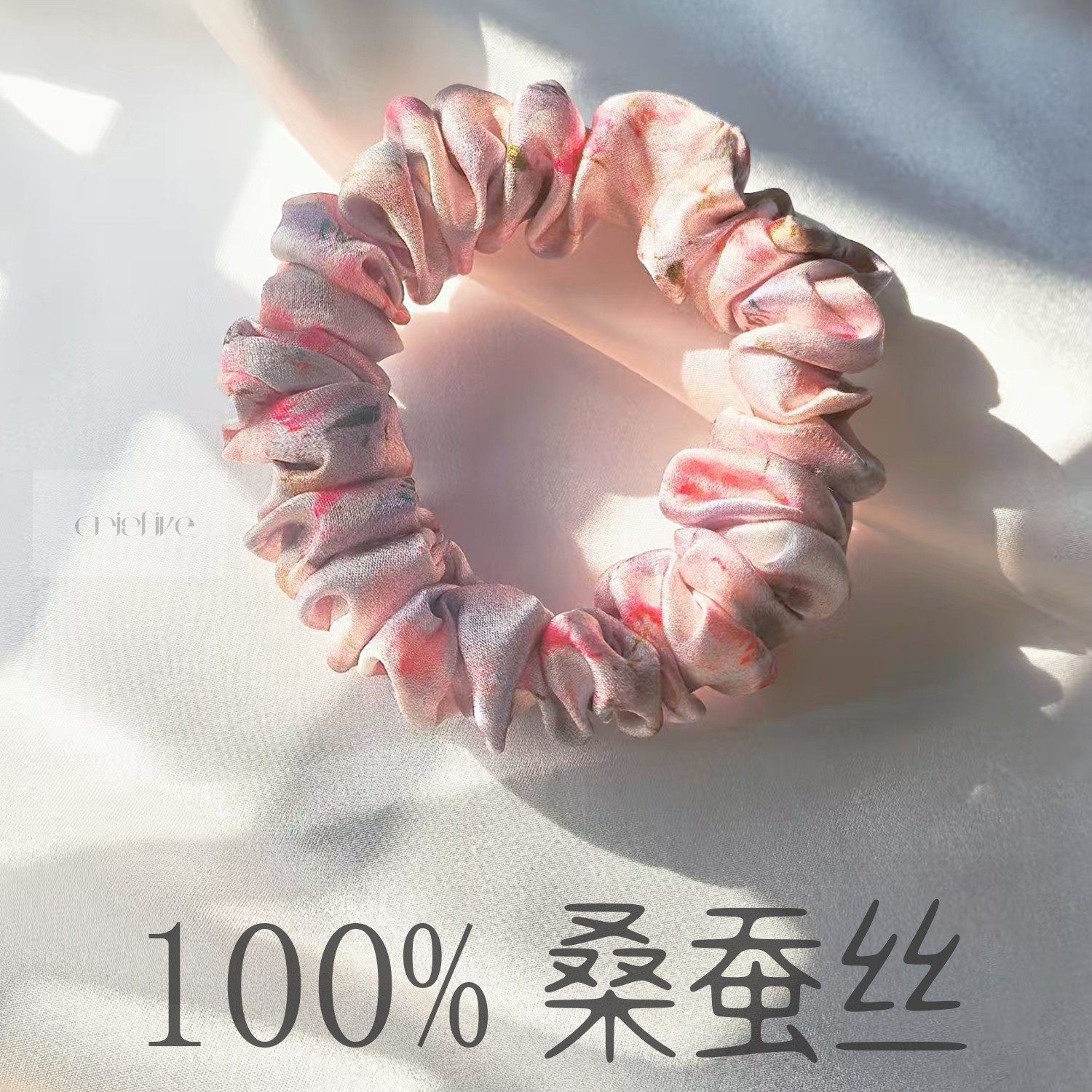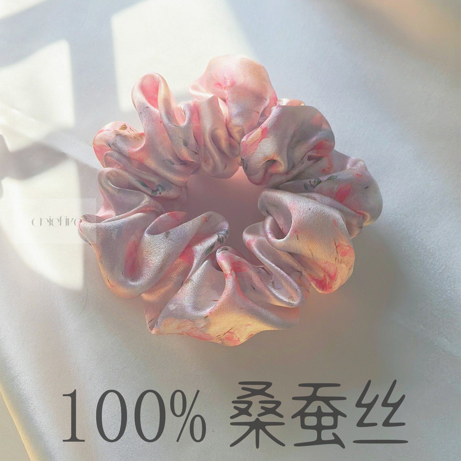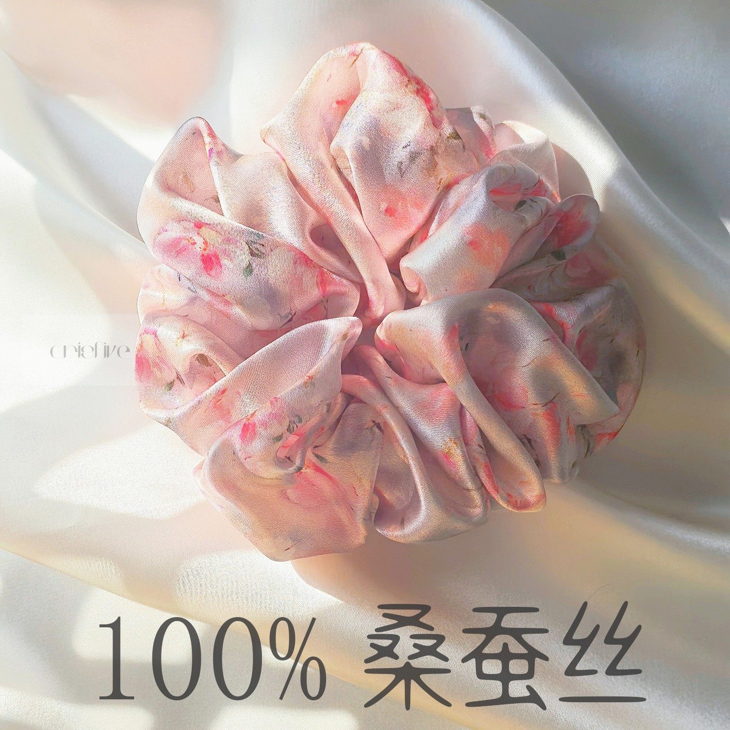 原创100%真丝发圈桑蚕丝印花发圈大肠小肠发饰高级不伤发似锦繁花