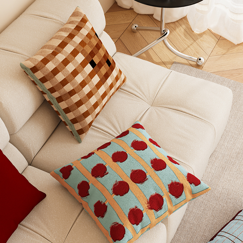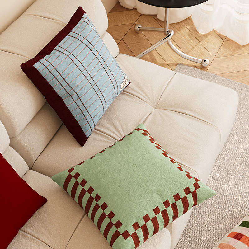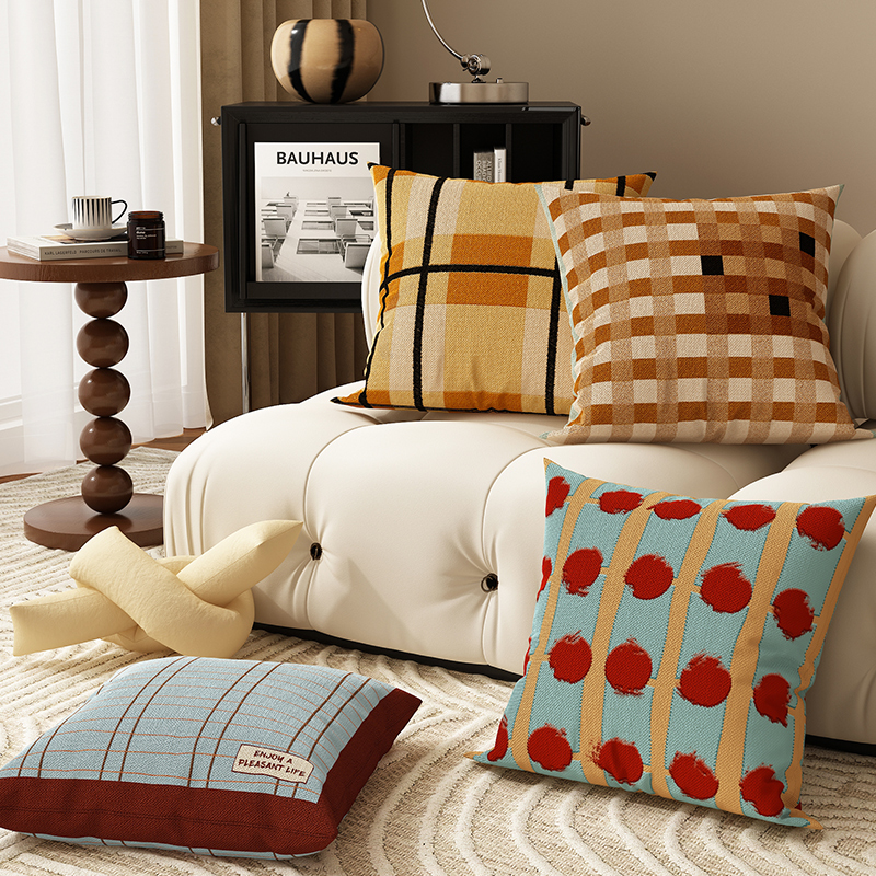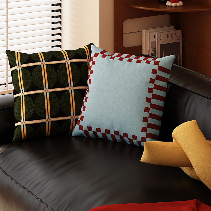 包豪斯格子沙发抱枕荷兰绒靠枕