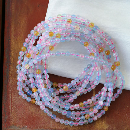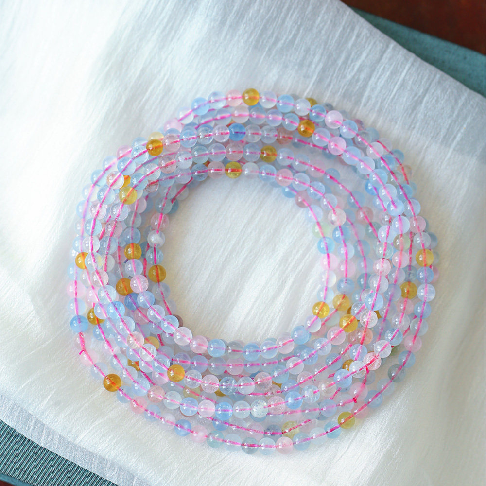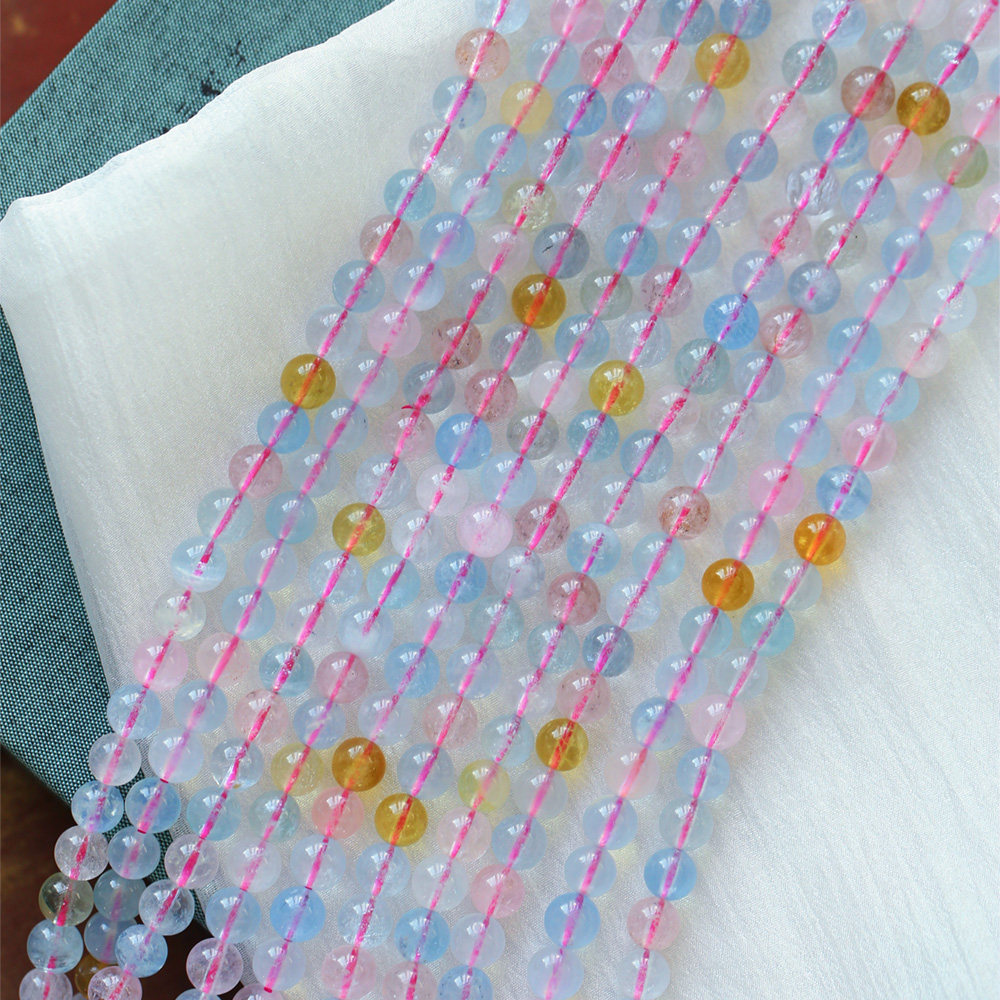 天然水晶冰透体摩根石三圈款手链 女款糖果色水晶手串饰品礼物