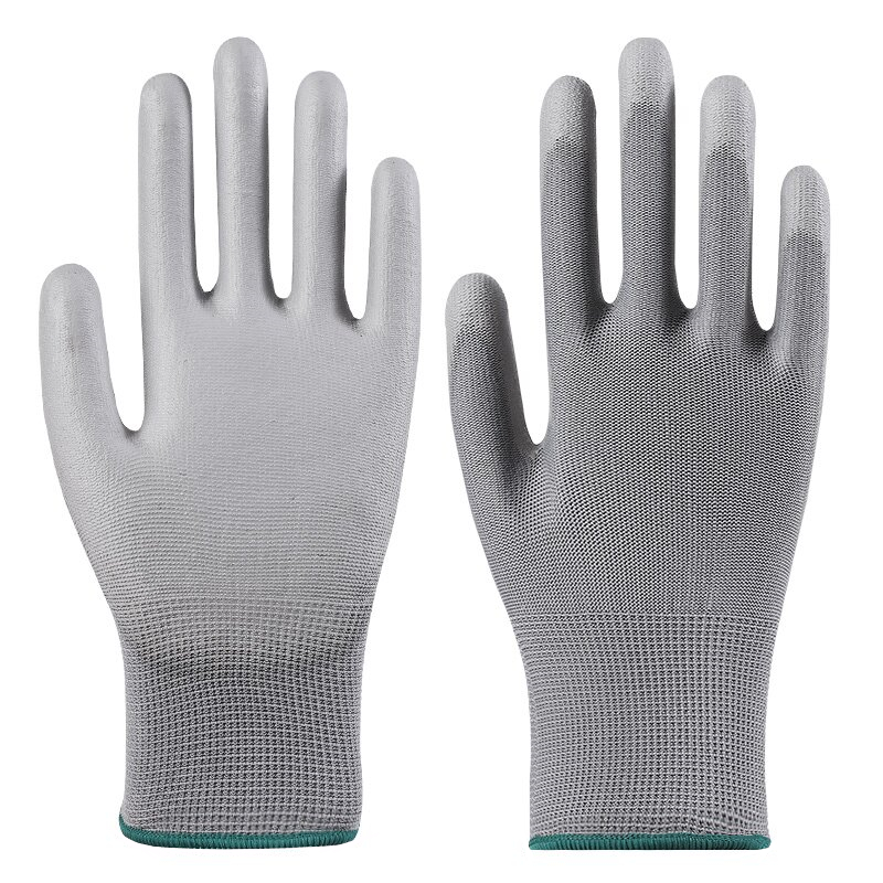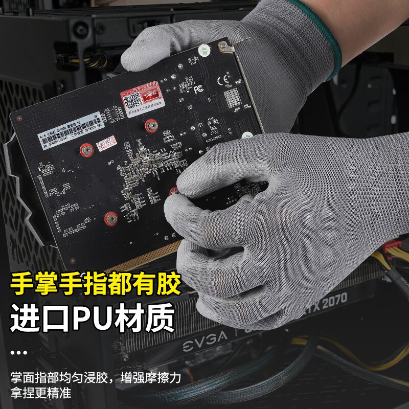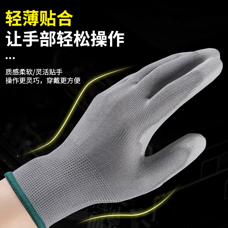 PU涂掌薄款白色尼龙涂胶浸胶涂指耐磨透气电子无尘防静电劳保手套