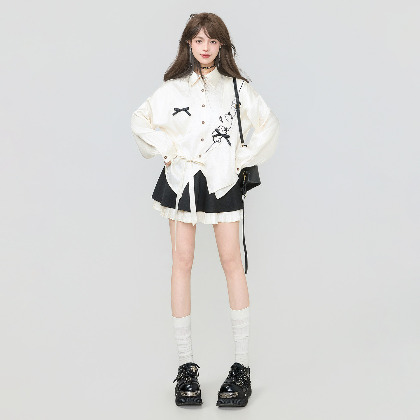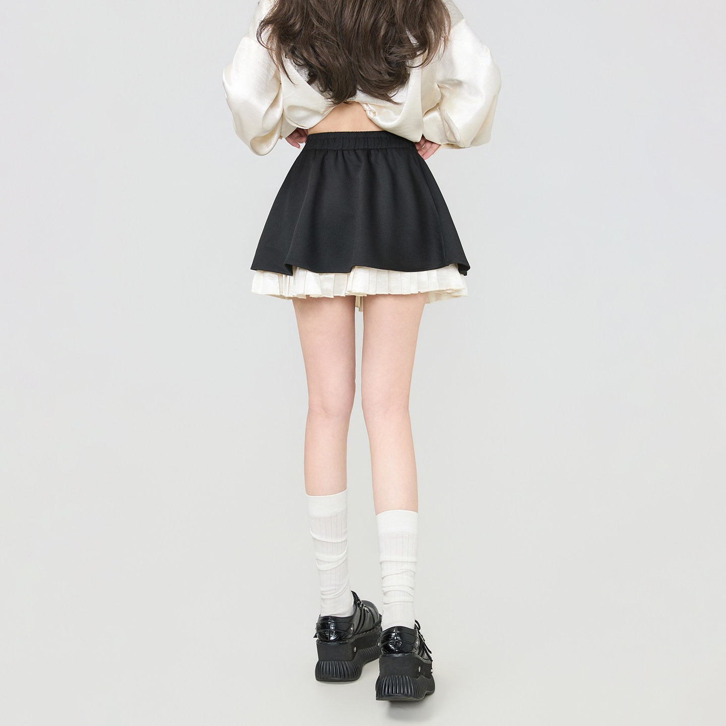 KEIKO韩系减龄褶裥拼接半身裙